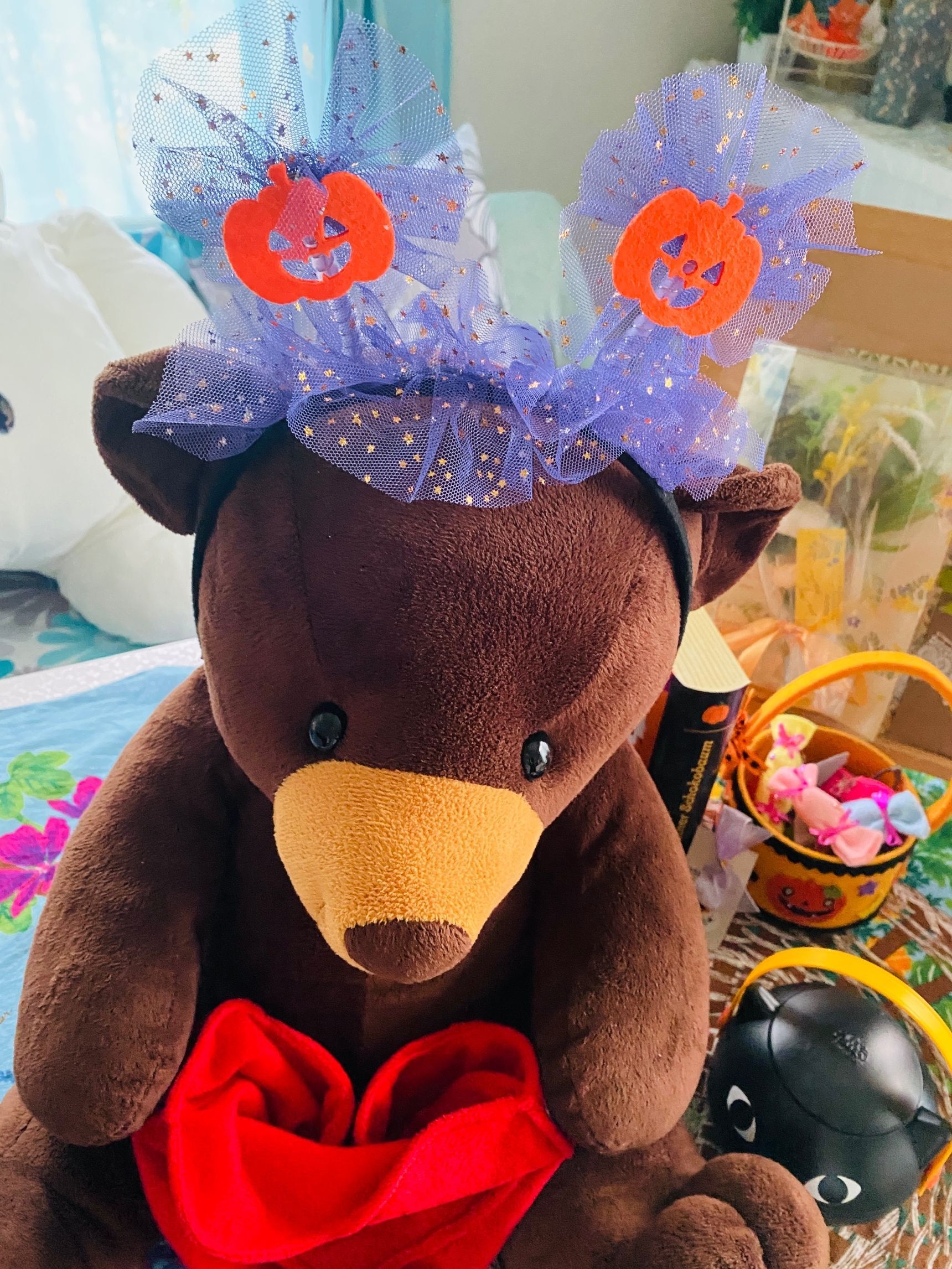 お気に入りのぬいぐるみに飾ってみました。 お部屋が明るくなりますよ〜♪