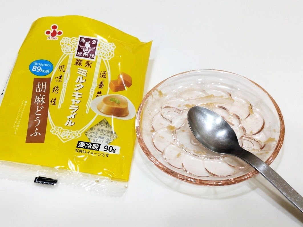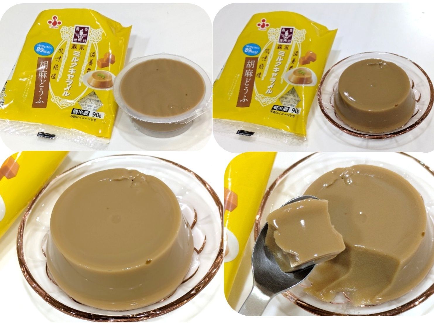 コラボ商品第一弾『milky胡麻どうふ ミルキー味』コラボ商品第二弾『Lipton ミルクティー胡麻どうふ』よりも、胡麻どうふの弾力はソフトな気がします。