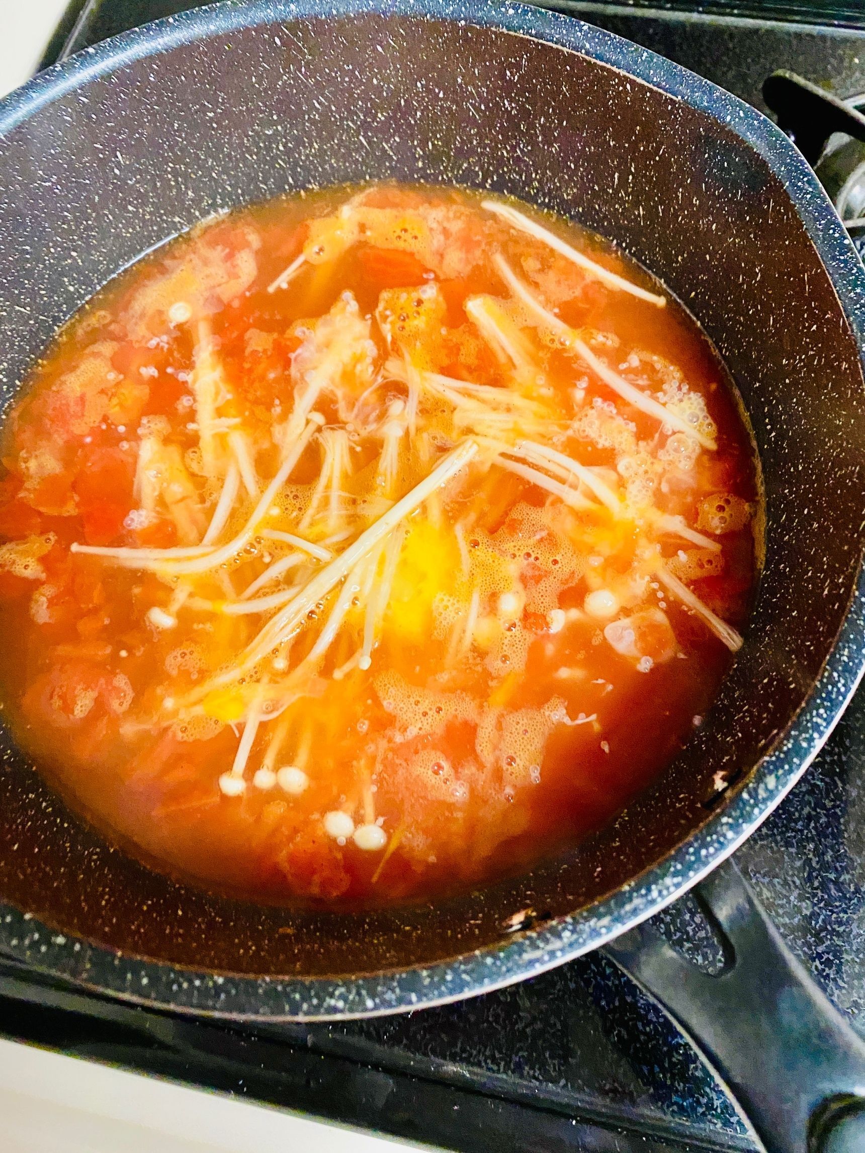 トマトとえのきの卵スープは、トーストと合わせても美味しいですよ。