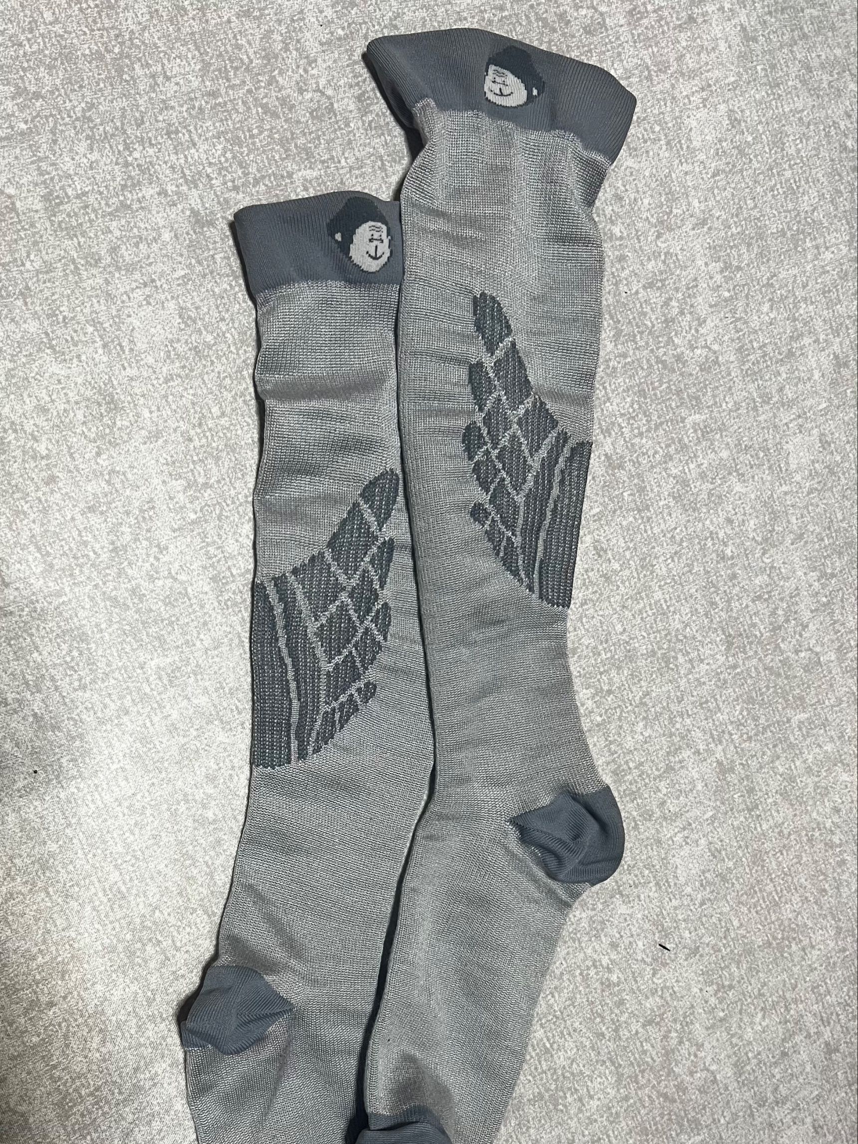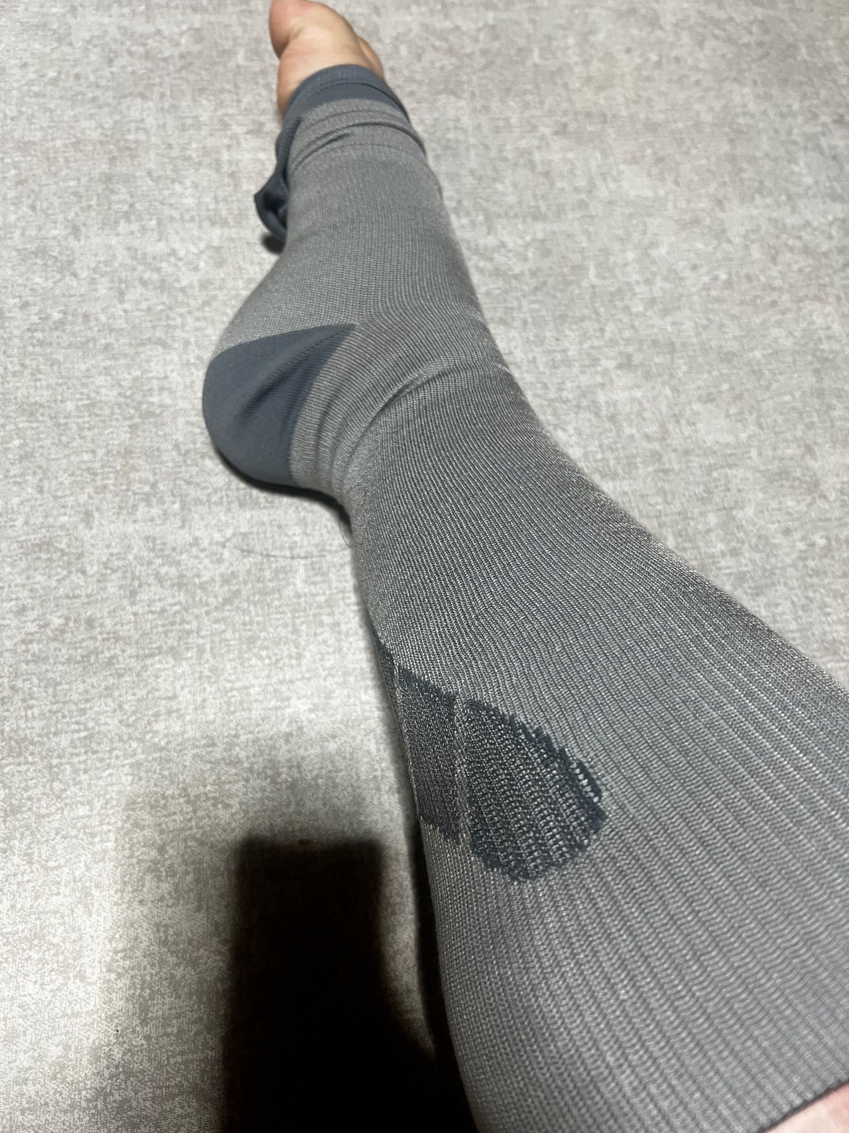 履いて寝る前。パンパンの足ですみません。でもLサイズでも余裕で履けました!