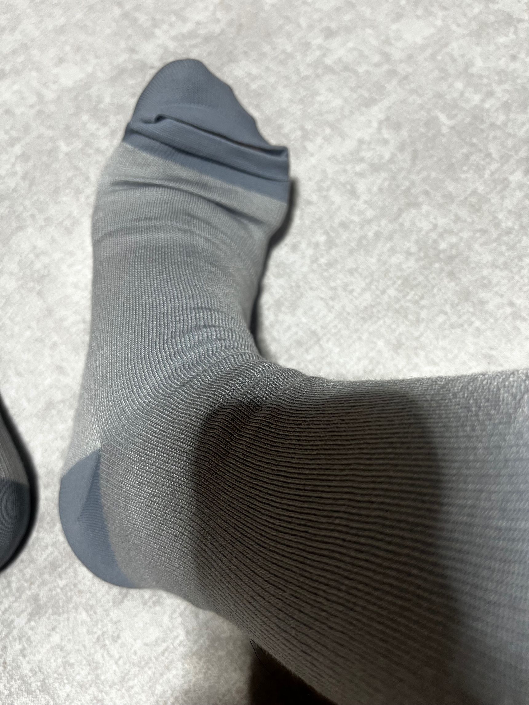 ちなみに、脚が太いせいもあって1回履くとこんな感じに。とても気に入ったので耐久性を見てから、もう1足買うか検討します。
