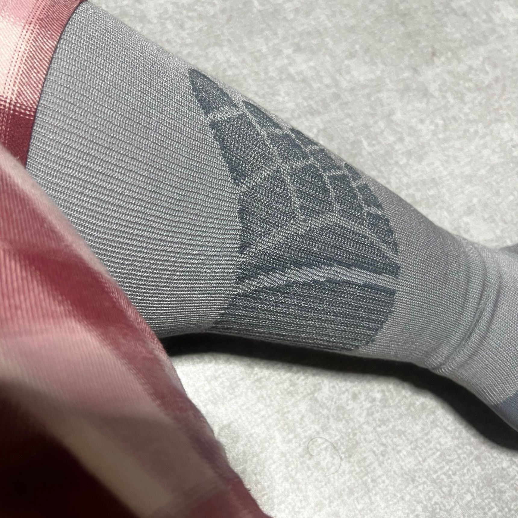 翌朝です!分かりにくいかと思いますが脚を畳んだ状態でもスッキリ。個人的に、いつもの着圧ソックスよりキツくは感じなかったですが、スッキリ度合いは格段に良かったです。
