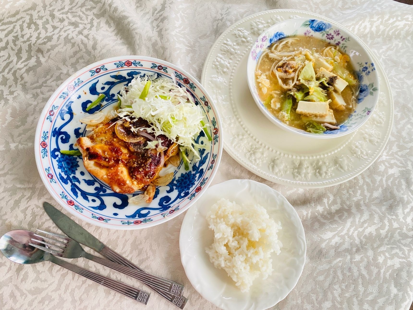 朝食をがっつり食べる時は、チキンステーキも焼きますよ。