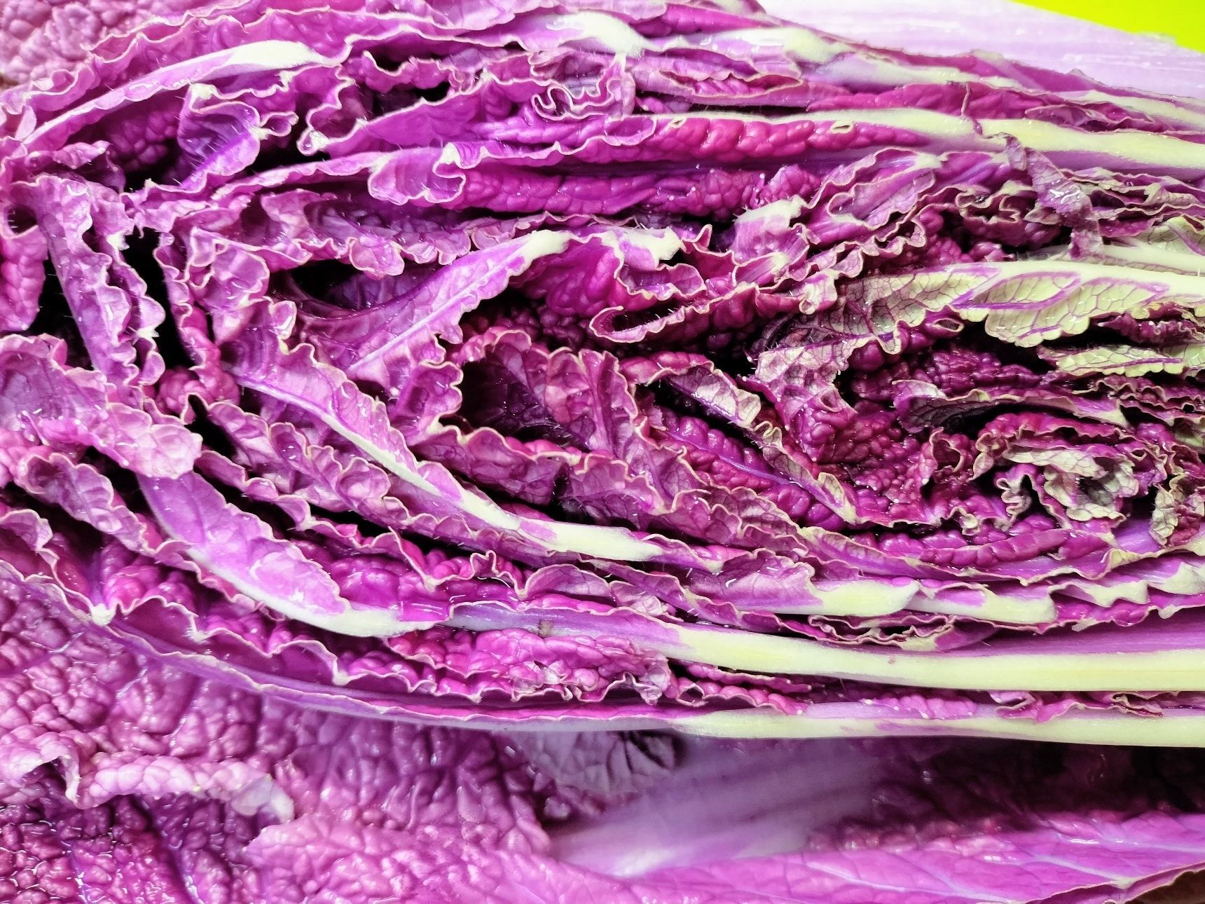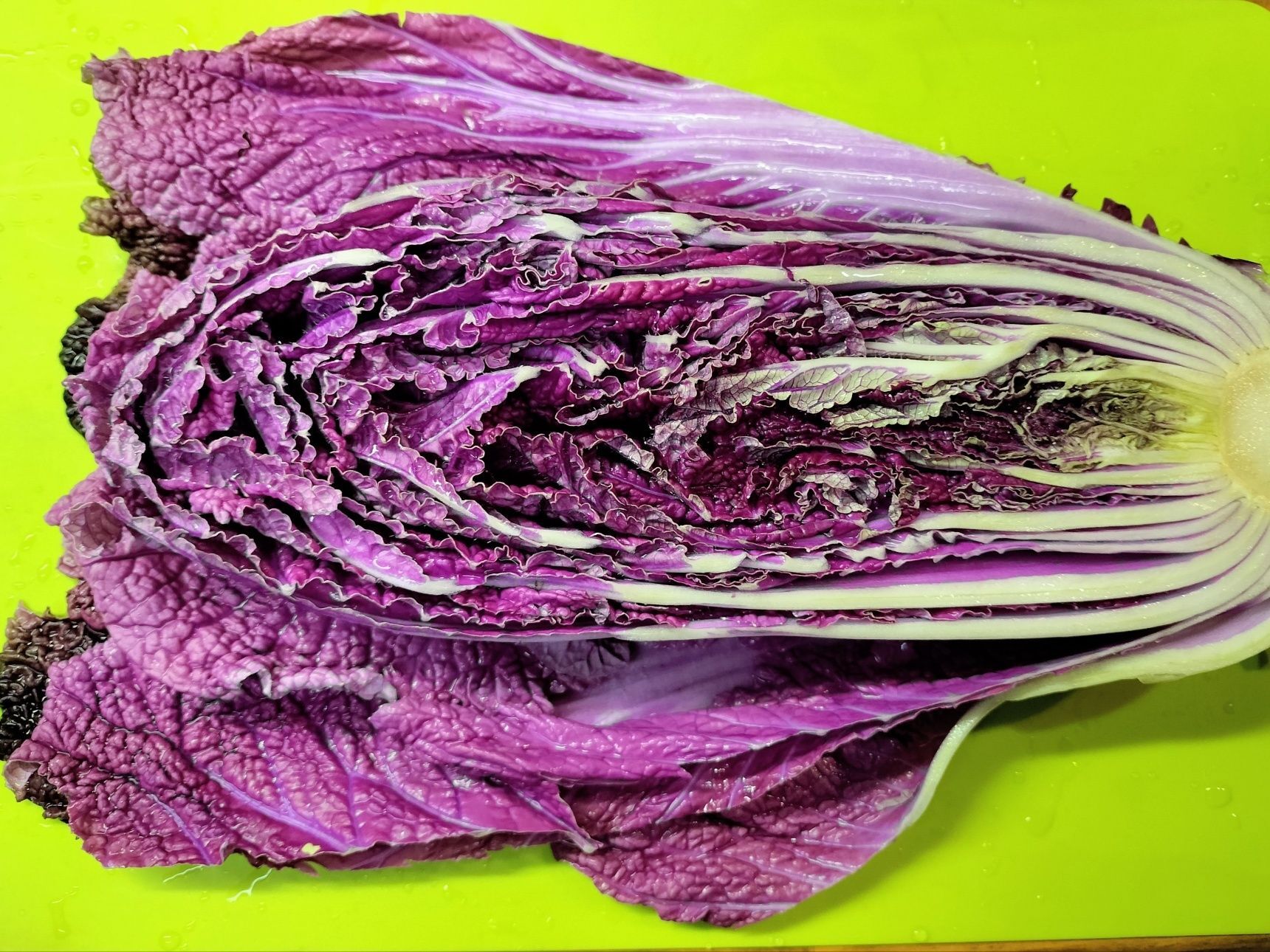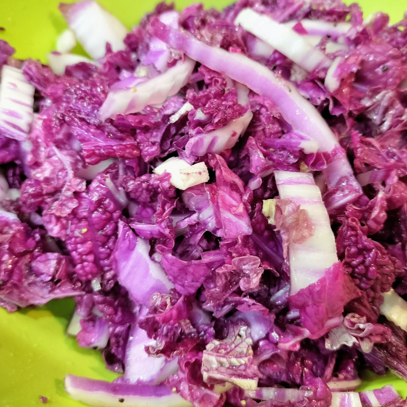 3. 器に千切り白菜(紫)と材料●を入れて、混ぜる
