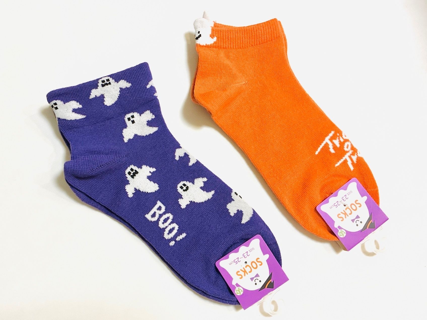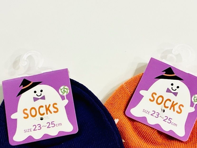 毎年、100均にハロウィン商品が並びだすと、必ずチェックするのが「ハロウィン靴下」です。