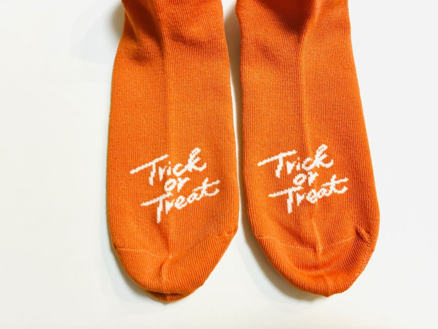 オレンジの方は、足の甲の部分に「Trick or Treat」の文字がオシャレ。