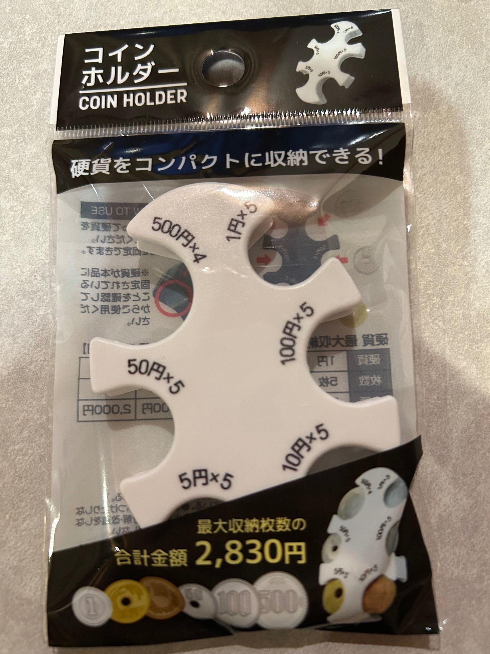 それぞれのコインを500円なら4枚、1円・5円・10円・50円・100円はそれぞれ5枚収納できます。総額2830円収納できます。