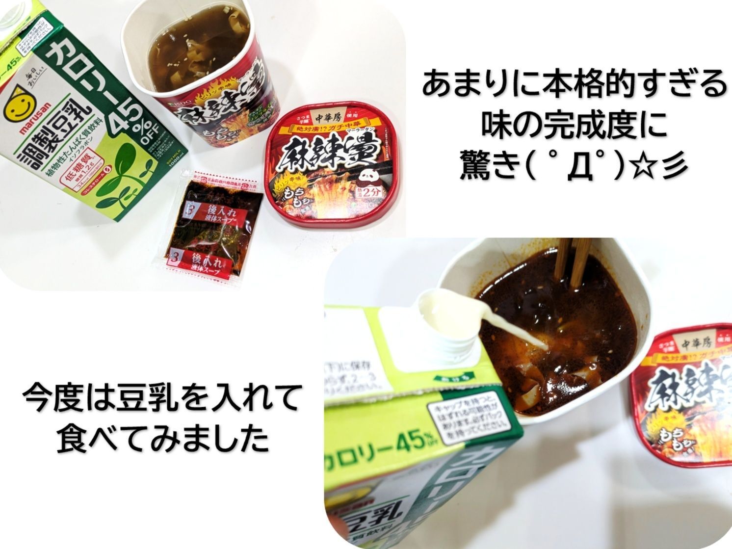 辛さを和らげるために、今度は“豆乳”を入れて食べてみました。
