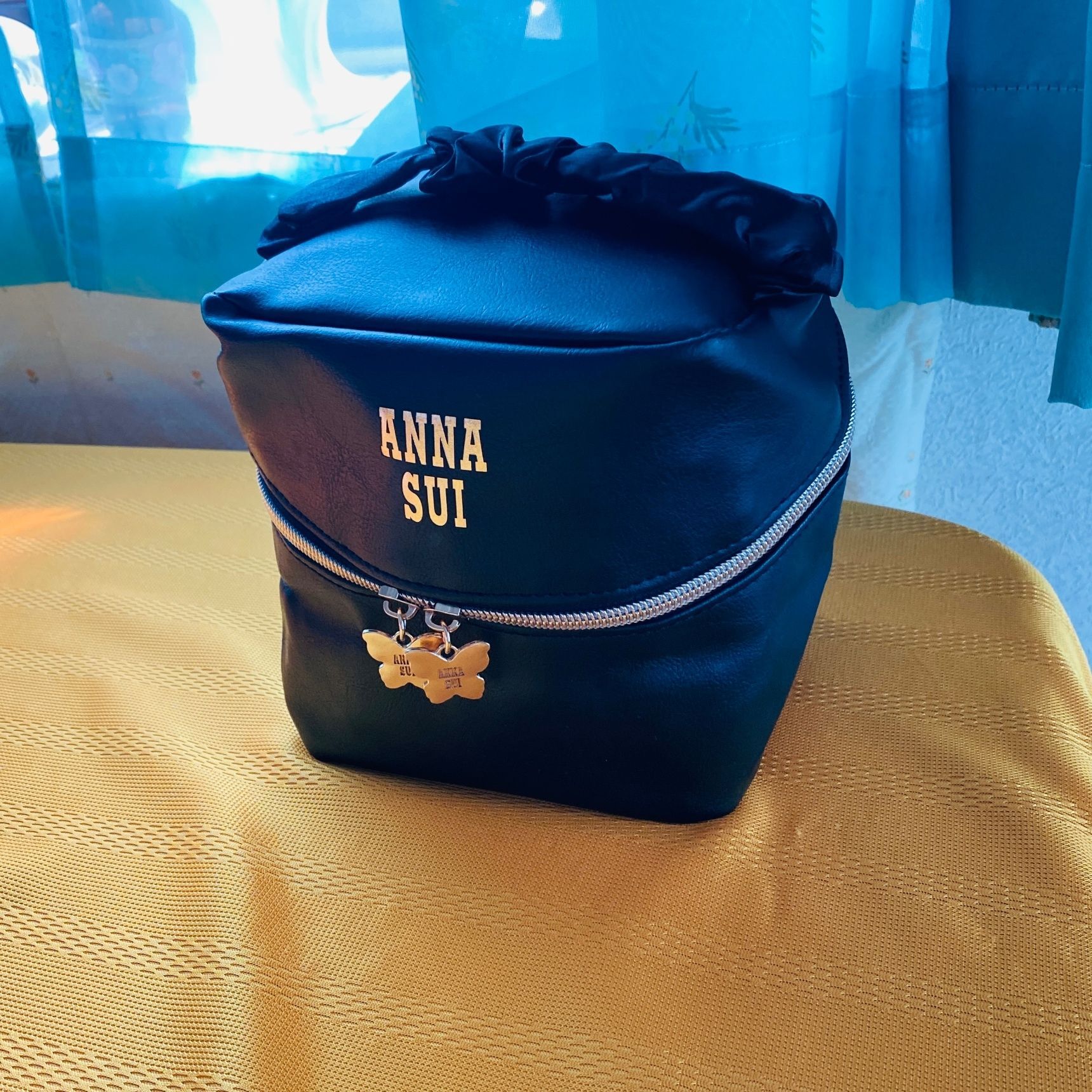サイズは約高さ15cm×幅14cm×奥行12cm。ガバッと開いて、ファスナーが斜めにカーブしてあるので、取り出しやすいです。