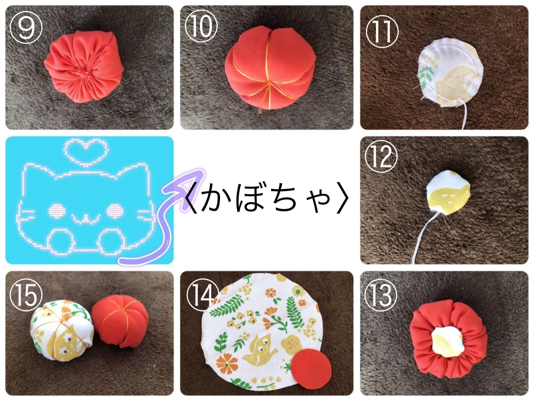 中に綿を詰め、コの字閉じで縫います。