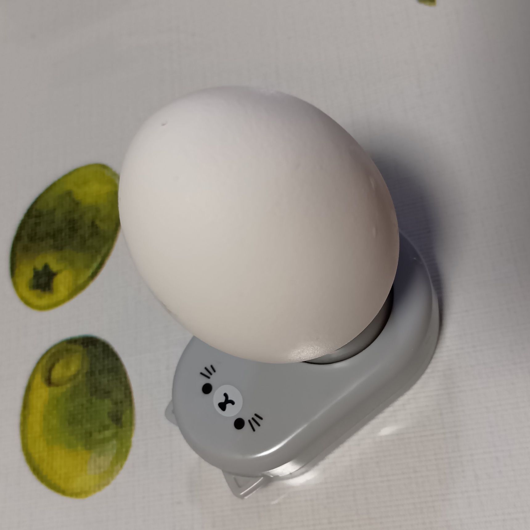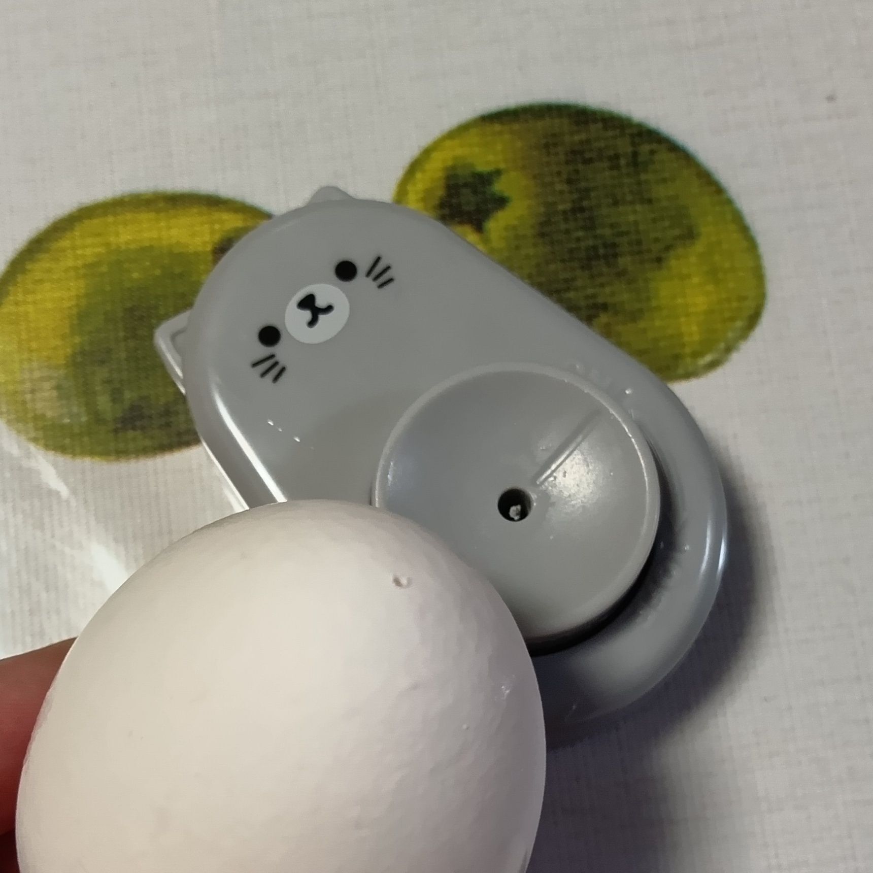 100円ショップなどで手に入る卵専用の穴あけ器を使い、卵の縦方向の上下にそれぞれ1か所ずつ穴を開けておく。