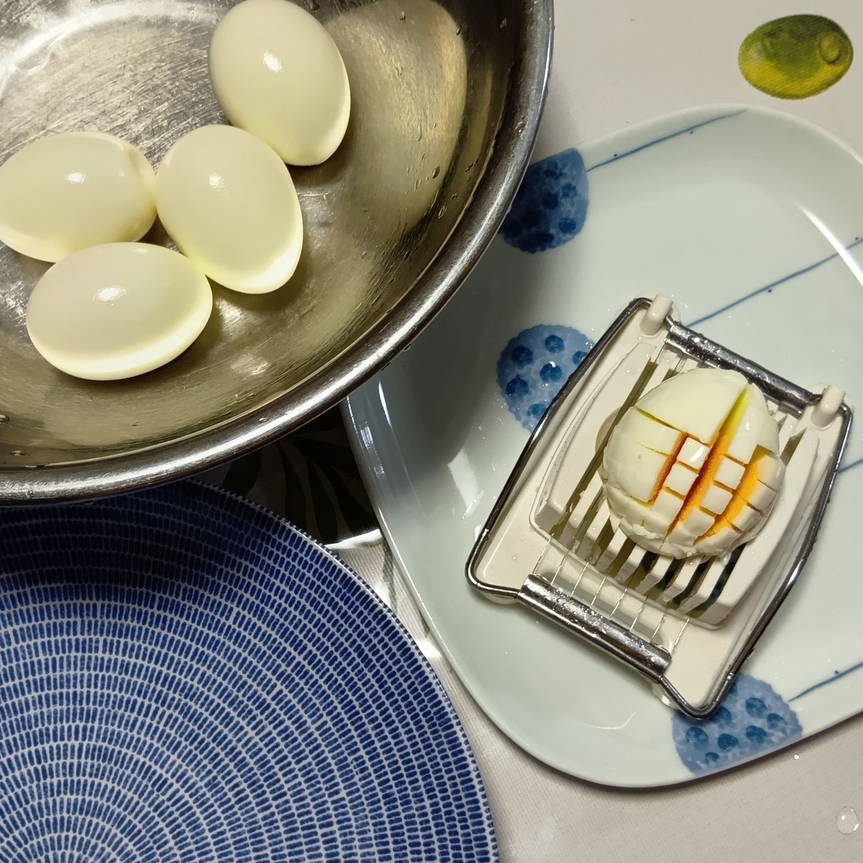 ③ ゆで卵は、100均で手に入るゆで卵スライサーでスライスする。