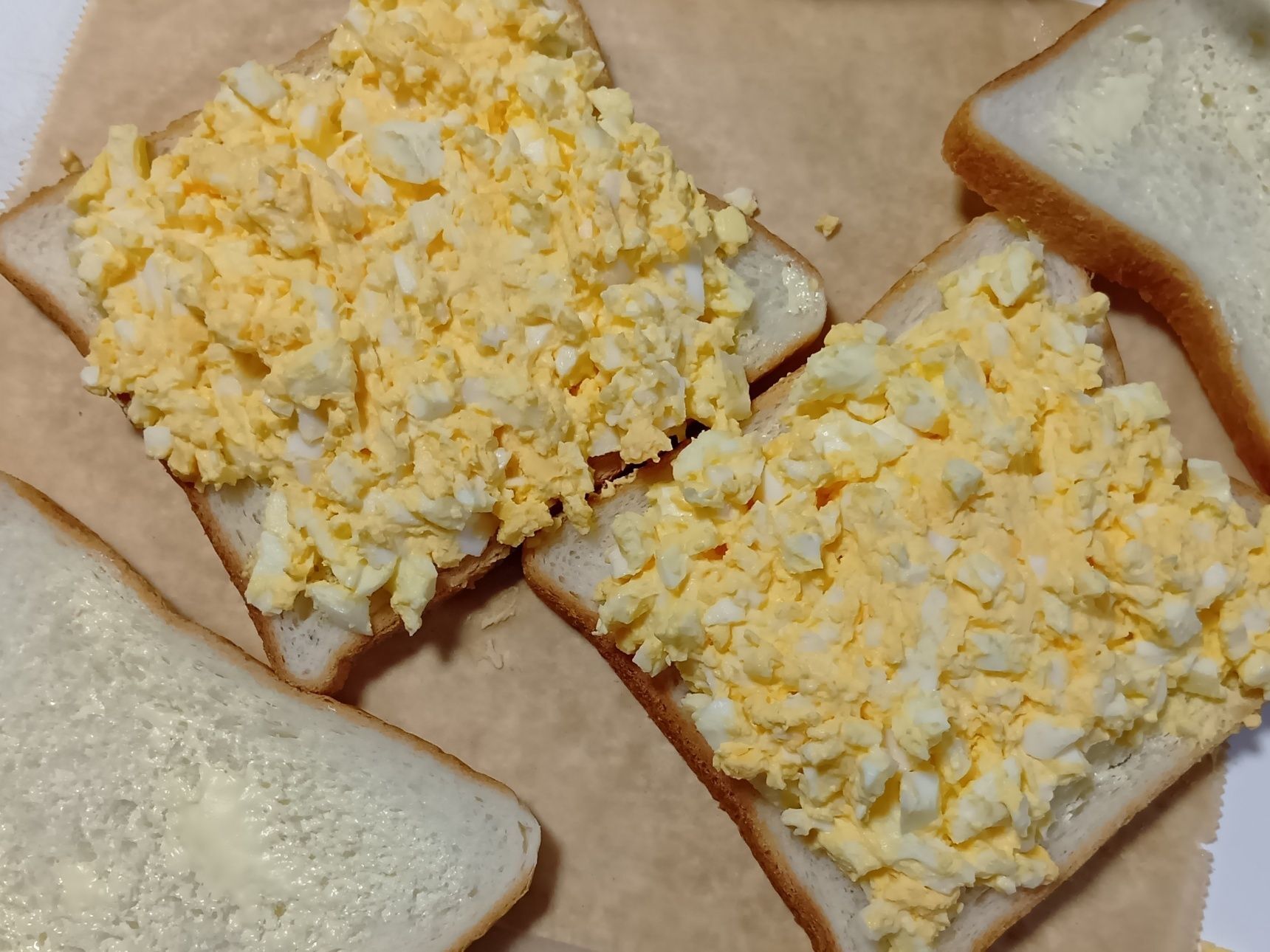 そのうち2枚のパンに、卵サンドの具をたっぷりのせる。