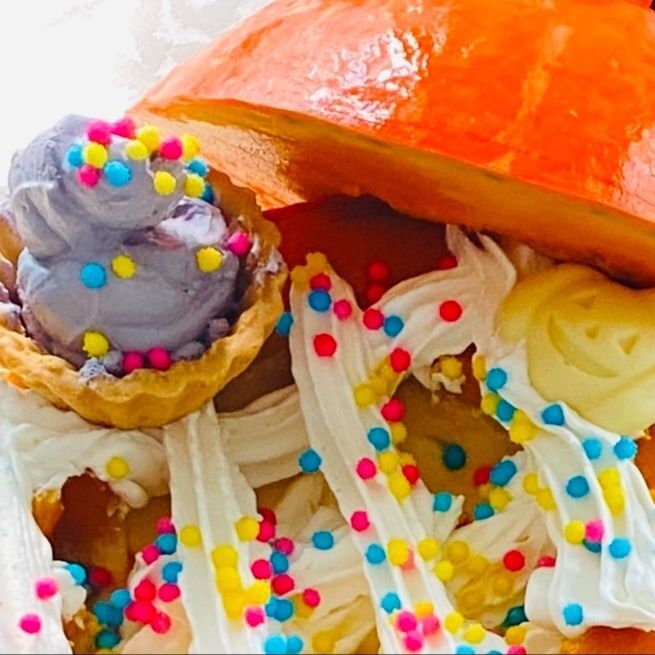 そこで、試しに破れたビニール袋から絞って、ソフトクリームのようにしてみました。 味はとっても美味しいです。 モンブランホイップクリーム紫芋フレーバーは大人気で、売り切れ続出ですが、入荷予定商品だそうです。 ハロウインに間に合ったら、簡単な素敵なスイーツが作れそうです。 お見かけしましたら、是非おすすめです。