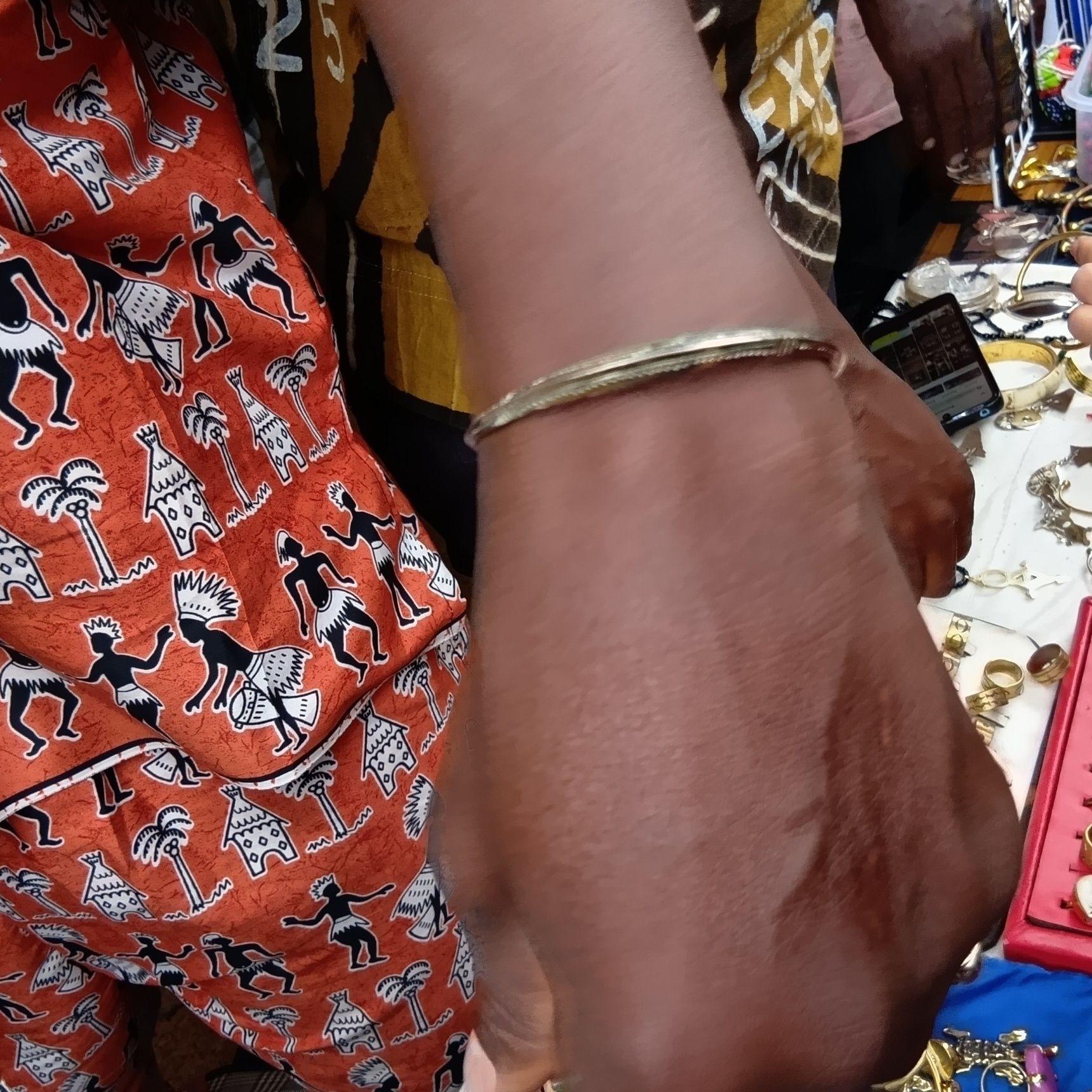 そんな中、私が購入したブレスレットはこちらです。模様は、お守りの意味を込めて彫られているものが多いんだそう。(画像の指輪は、『イエメン』で入手しましたよ!次は、マリ共和国の次に、イエメンを紹介しますね!)