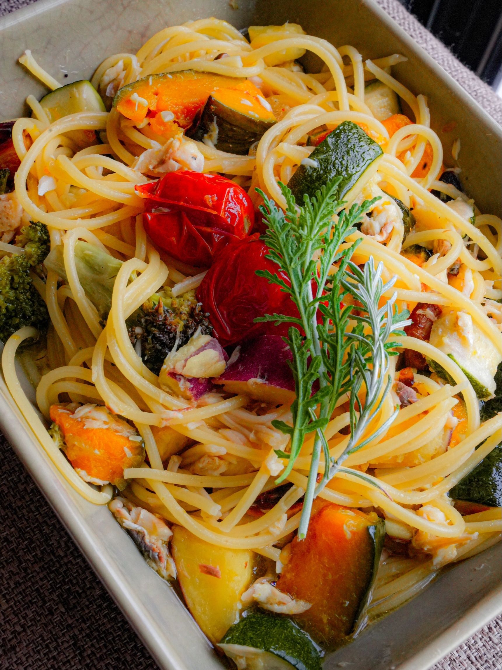 残ったぎゅうぎゅう焼きは魚の身をほぐして、パスタの茹で汁を加えてペペロンチーノ風に頂きました。