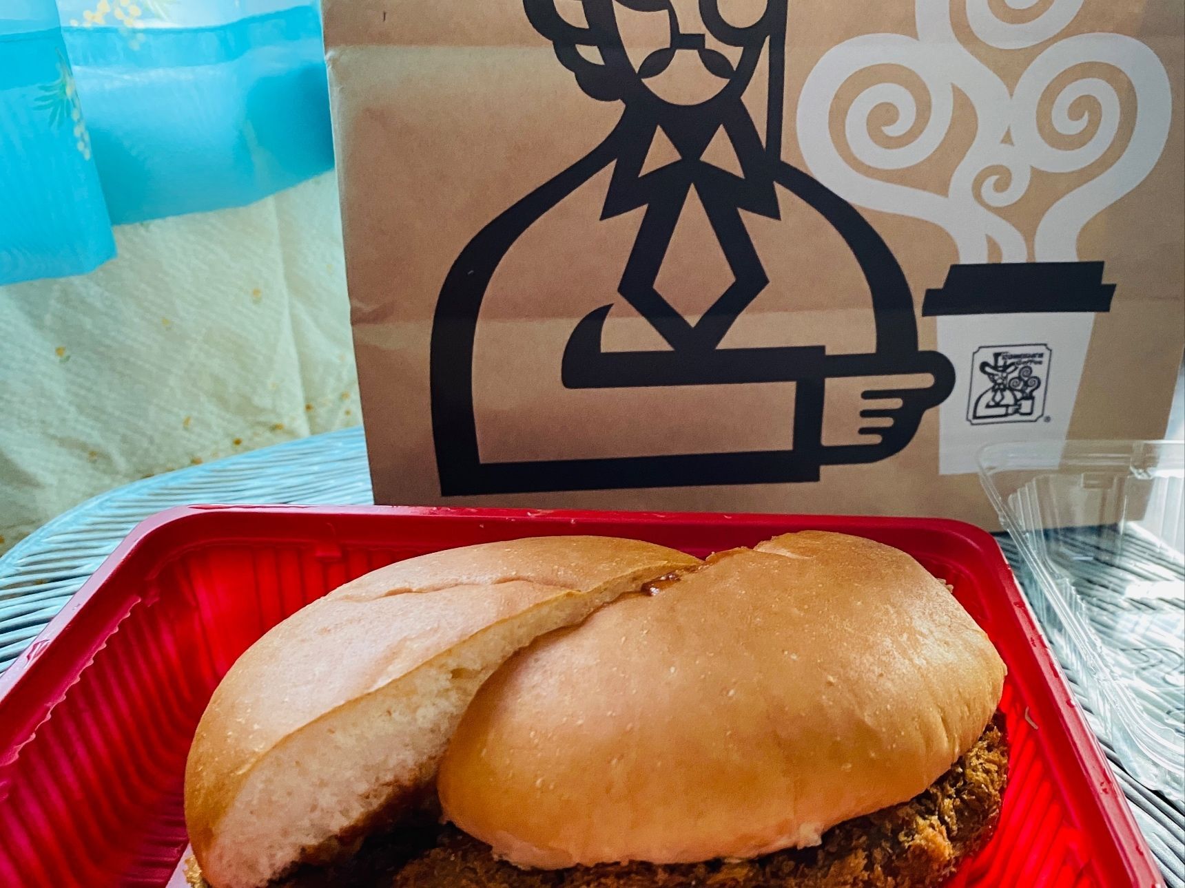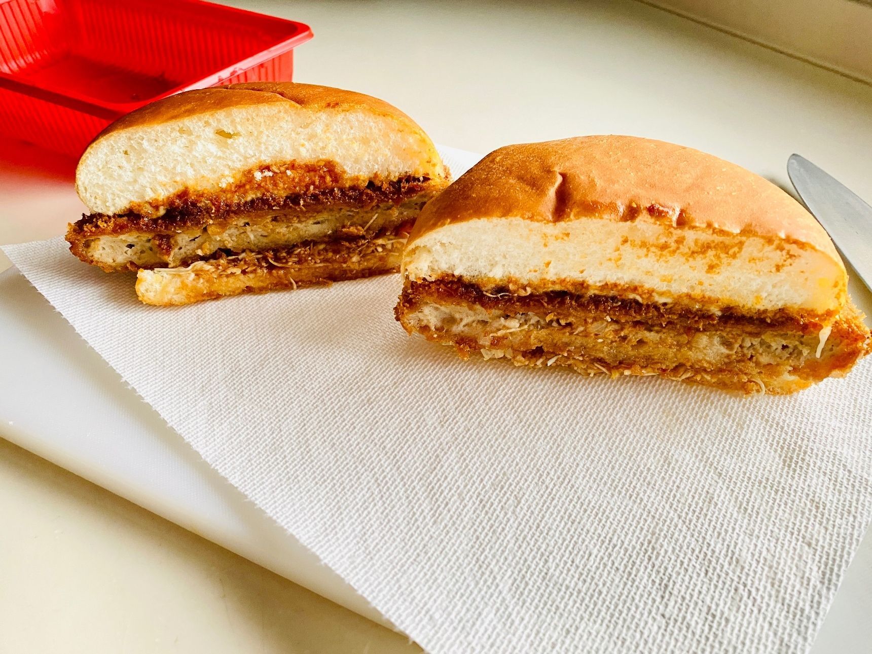 満足感の詰まったどでかい!メンチカツバーガーです。