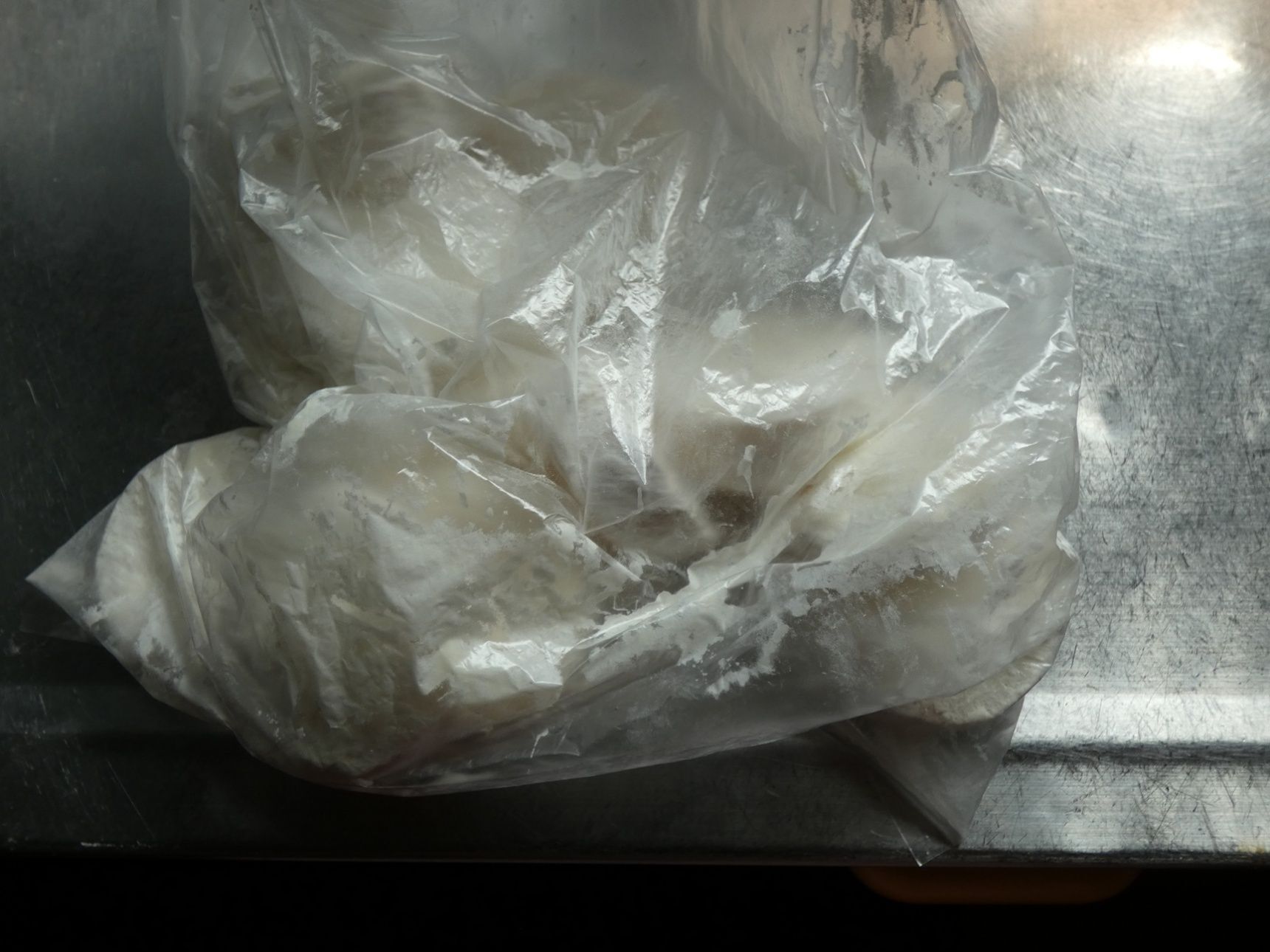 薄力粉をまぶすときは、ポリ袋を使うと薄く均一にまぶせます。
