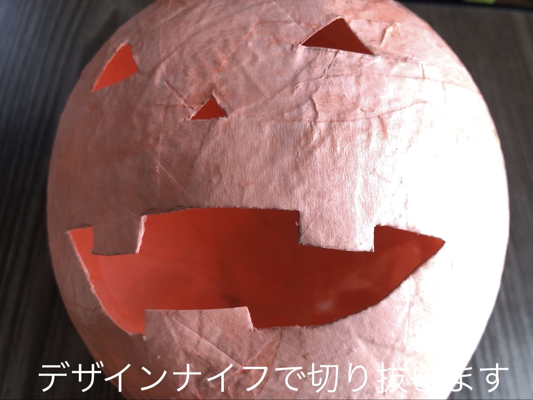 ジャック・オー・ランタンは下部分を切り、形を整えてからLEDキャンドルを中に入れます。