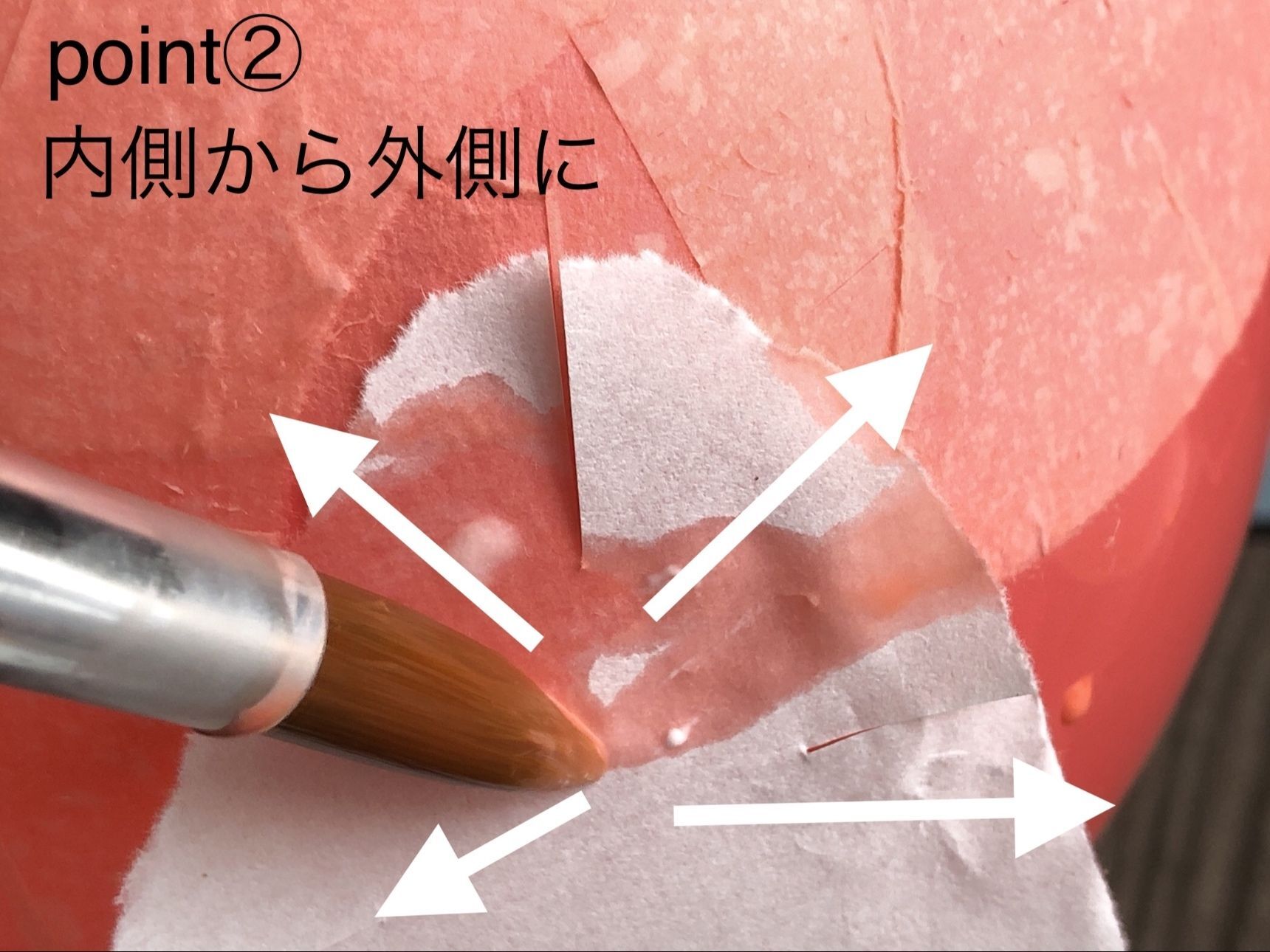 書き初め用紙を貼る時は、内側から外側に貼っていくことで、しわになったり空気が入るのを防いでくれます。