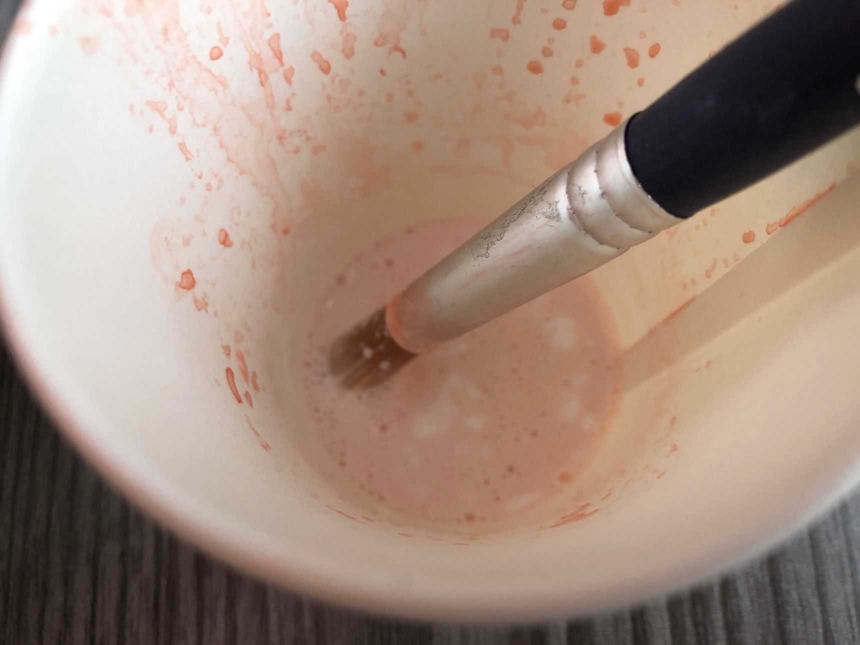 仕上げに水で伸ばした接着剤を塗り、一晩乾かします。