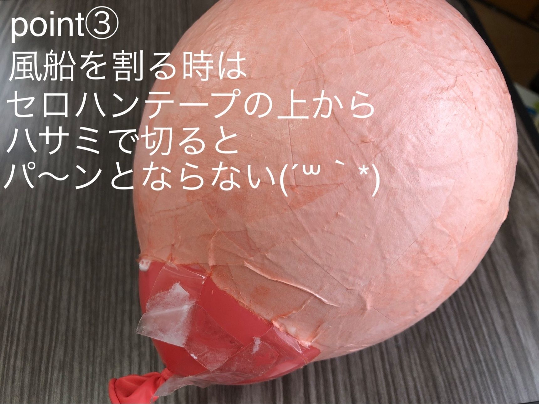 風船を割る時はセロハンテープの上からハサミで切るとパ〜ンとならないのでおすすめです。