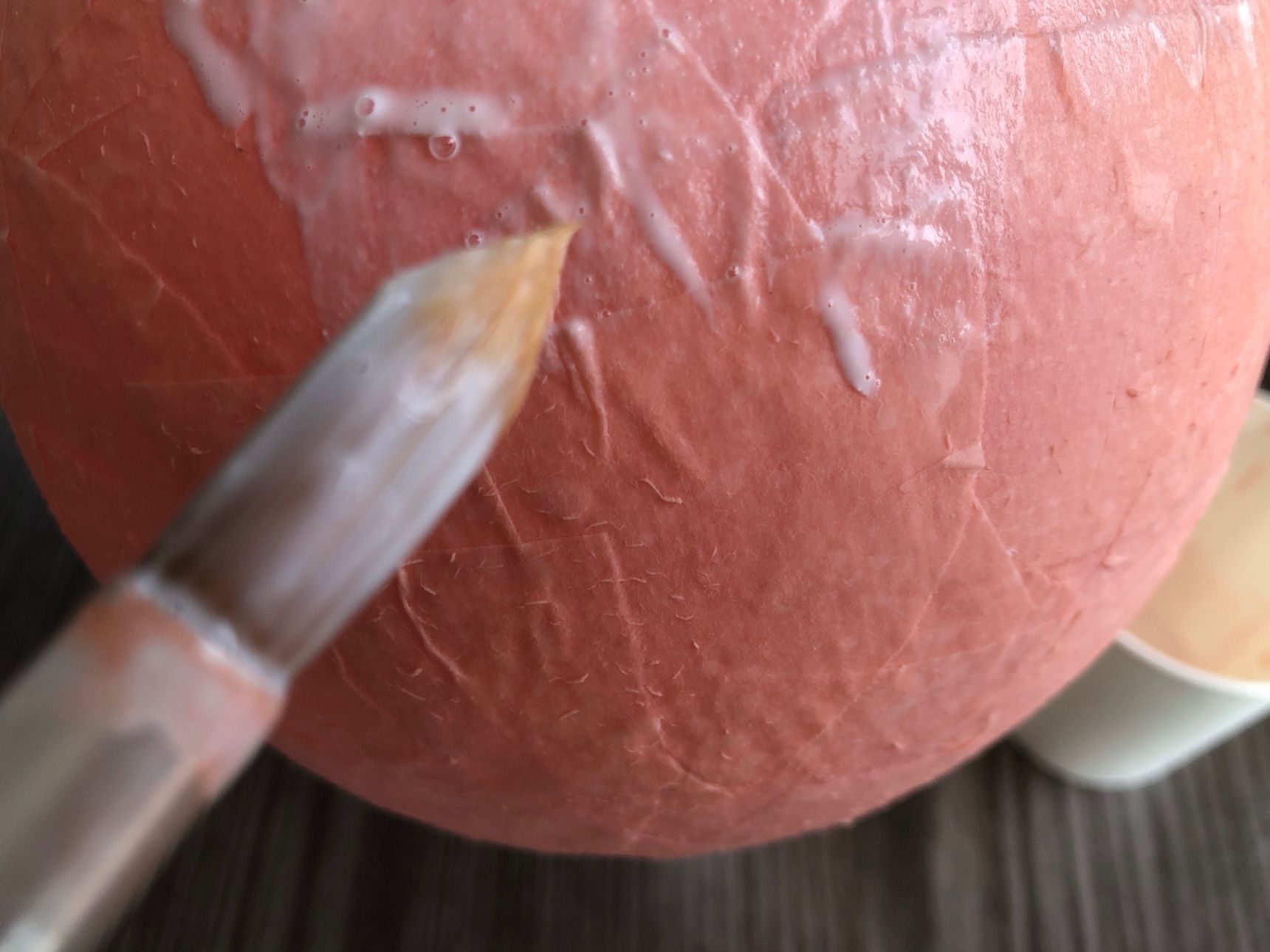 水で伸ばした接着剤が全体に塗れたら、このまま乾かします。