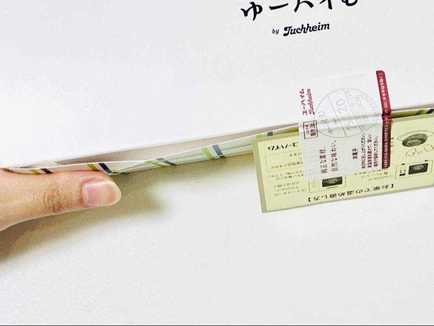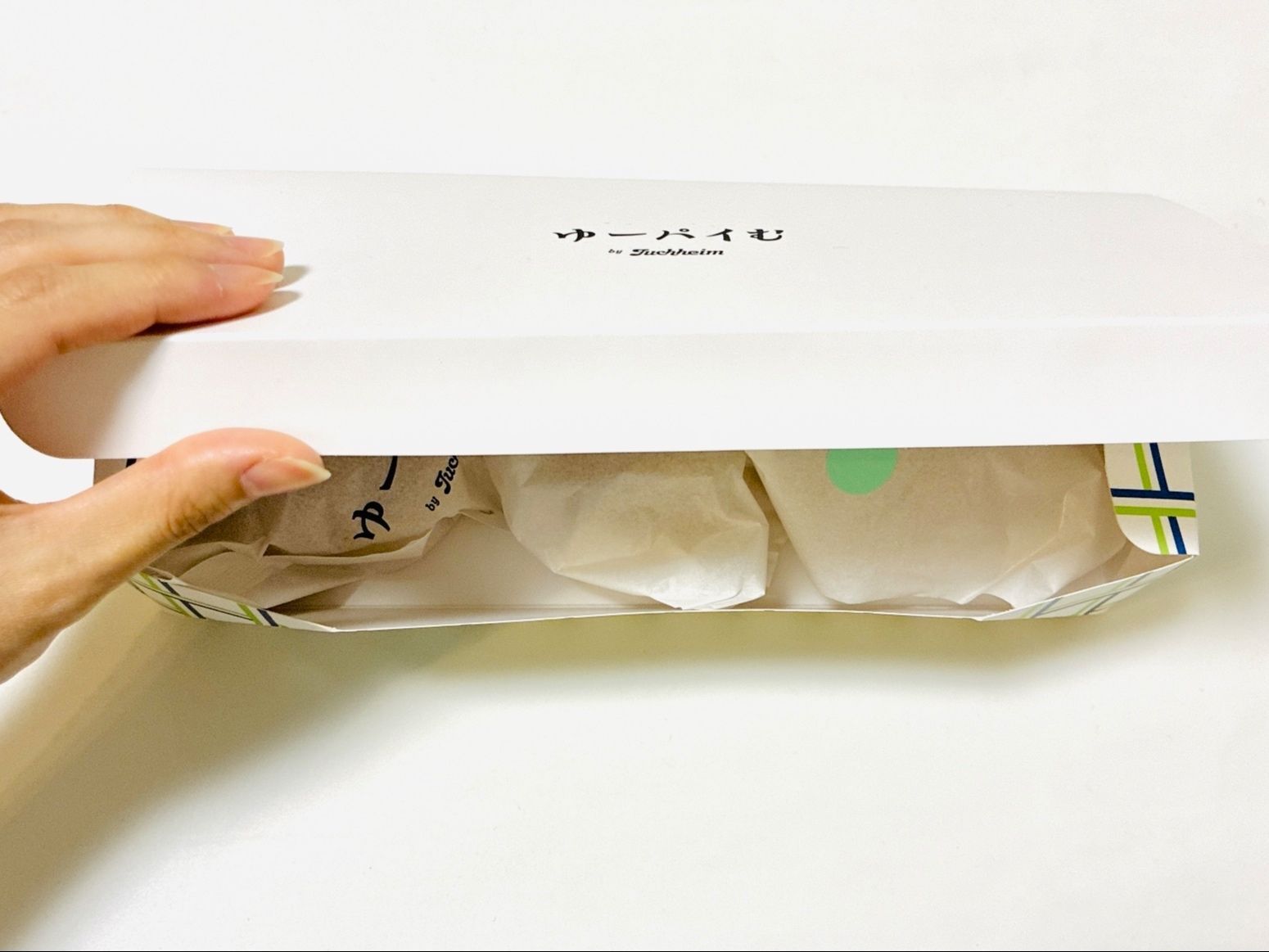 透明の袋から出てきたのは、チェック柄のホワイトの箱。