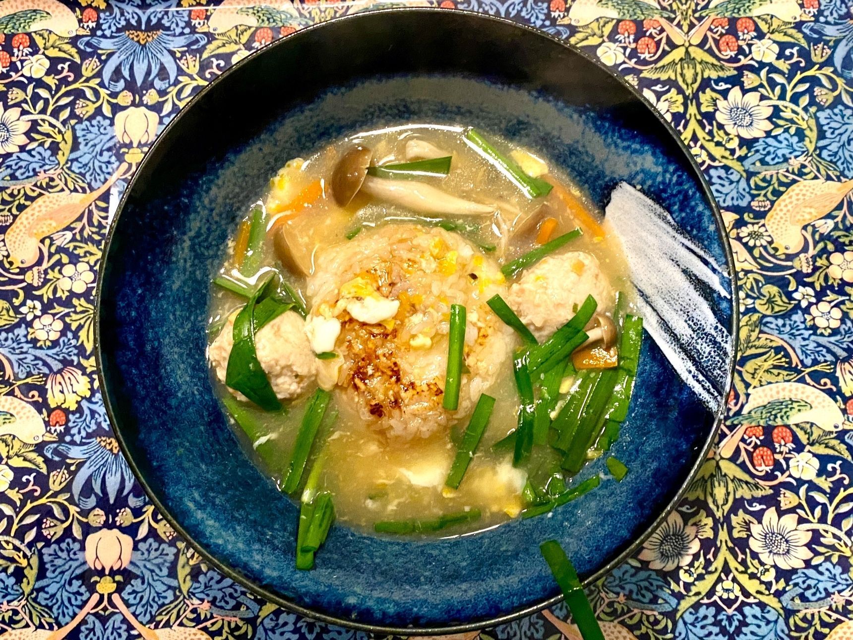 ③器に①の焼きおにぎりを入れ、②のスープを注ぎます。