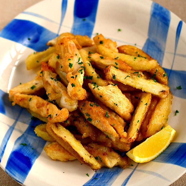 鶏むね肉は、1cm位に細切りする。れんこんも縦にスティック状に切る。片栗粉をまぶし、フライパンにオリーブ油を入れて、揚げ焼きする。熱いうちに塩、胡椒しておく。