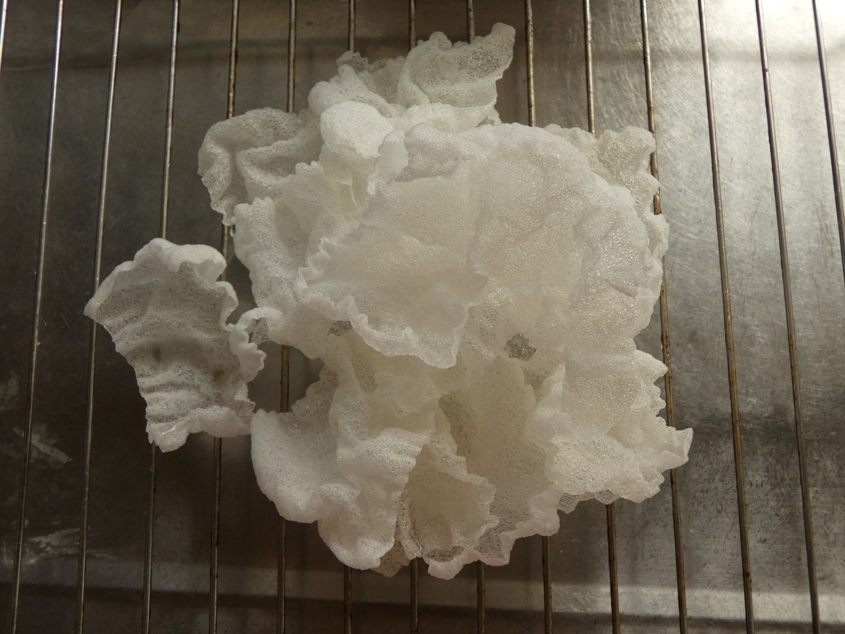 鍋に油を入れて、ライスペーパーを入れます。すぐに白くふくれあがるので、取りだします。