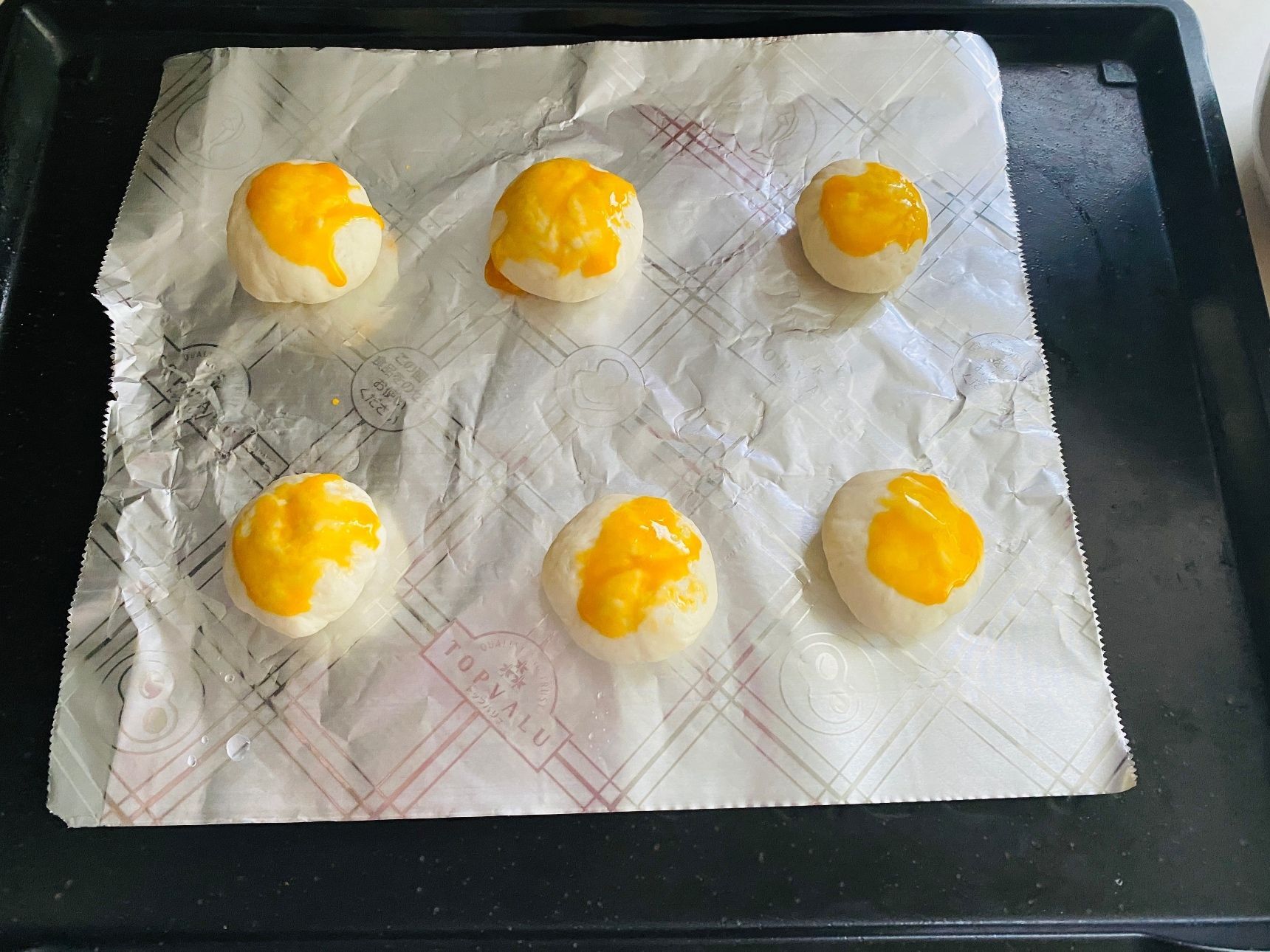 ①パン生地は肉まんの生地で代用しました。