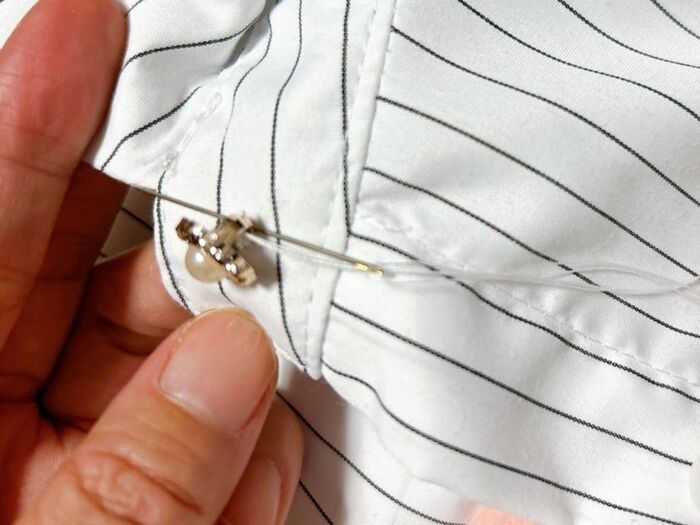 一気にボタンを外すと穴が迷子になることがあるので、一つずつ外す→つけるを繰り返す手順がおすすめ。