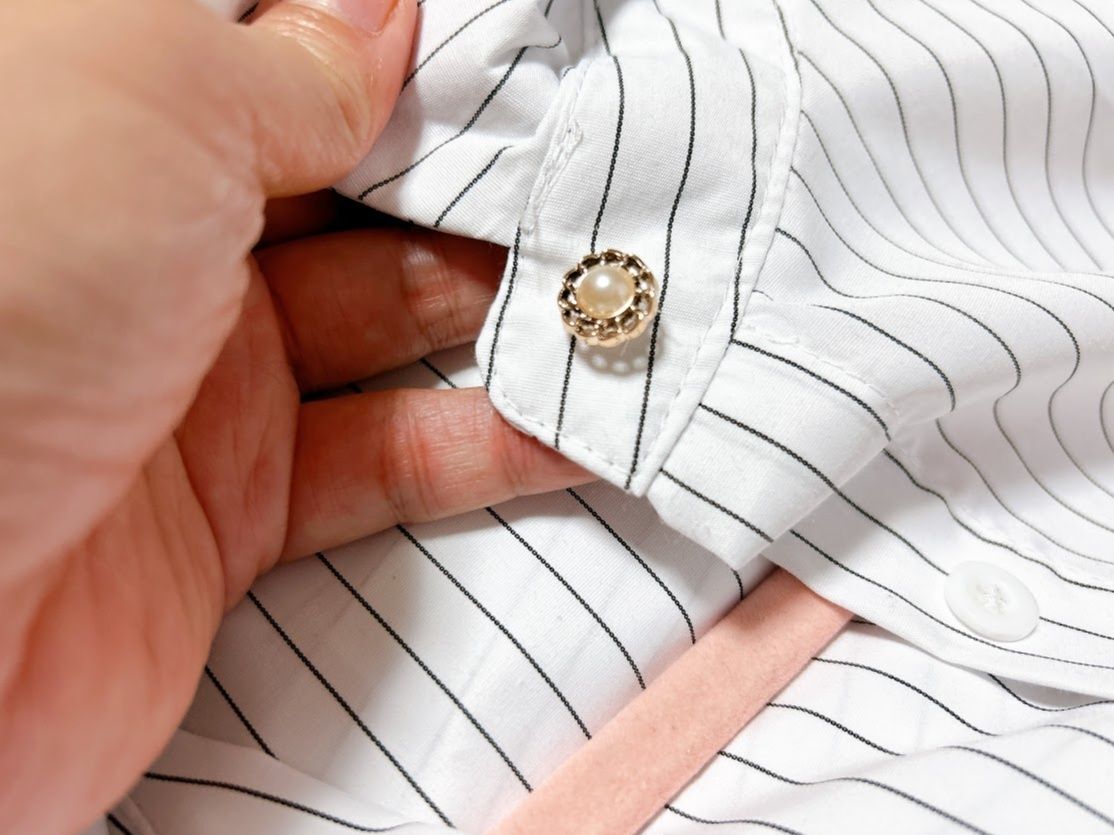 似たようなシャツが2着ありましたが、1着はパール、1着は金ボタンにしました。