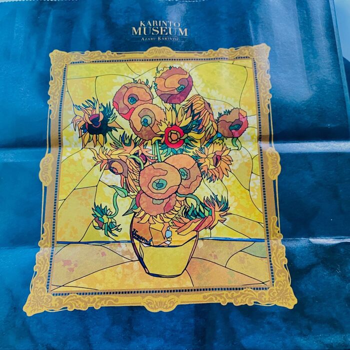 紙袋も素敵で、ゴッホのひまわり、夜のカフェテリアが描かれています。