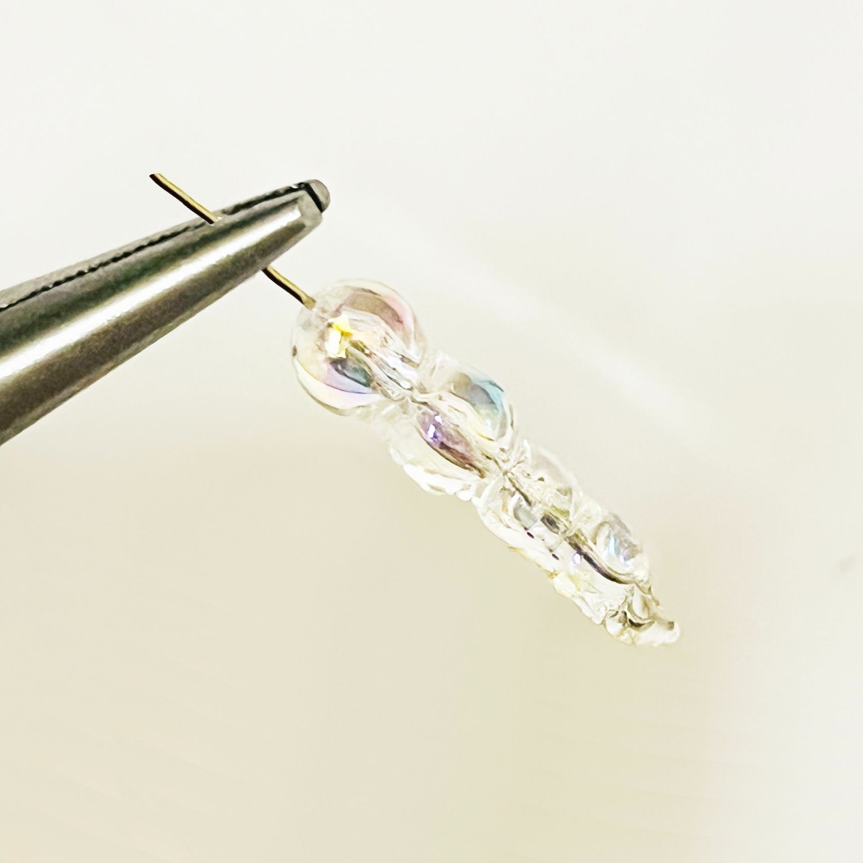 4.ペンチで9ピンの先を丸めて紐をつけたら完成!
