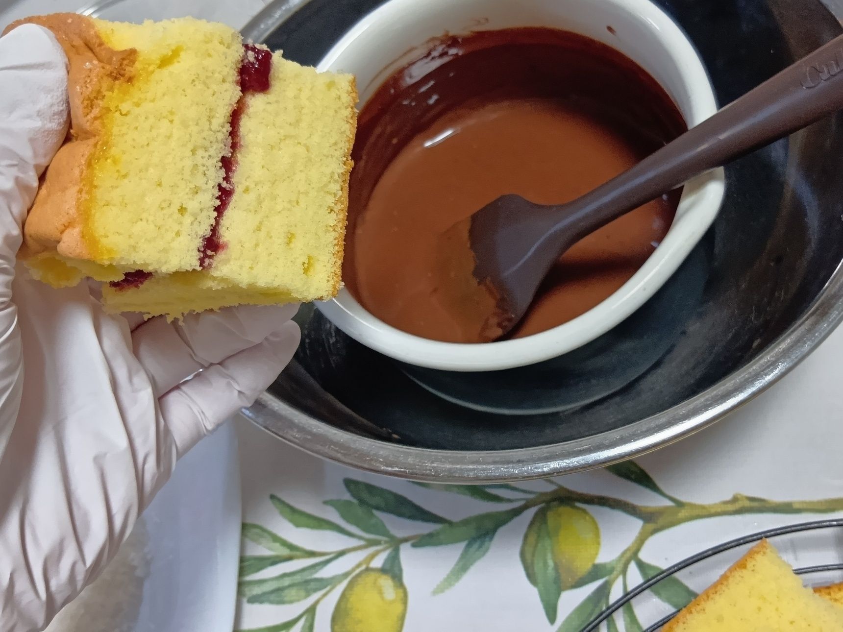 •スポンジケーキは市販品でも手作りでもOK!手作りなら、クッキングシートを使うと型から外すのもチョコをかけるのも簡単で経済的です。