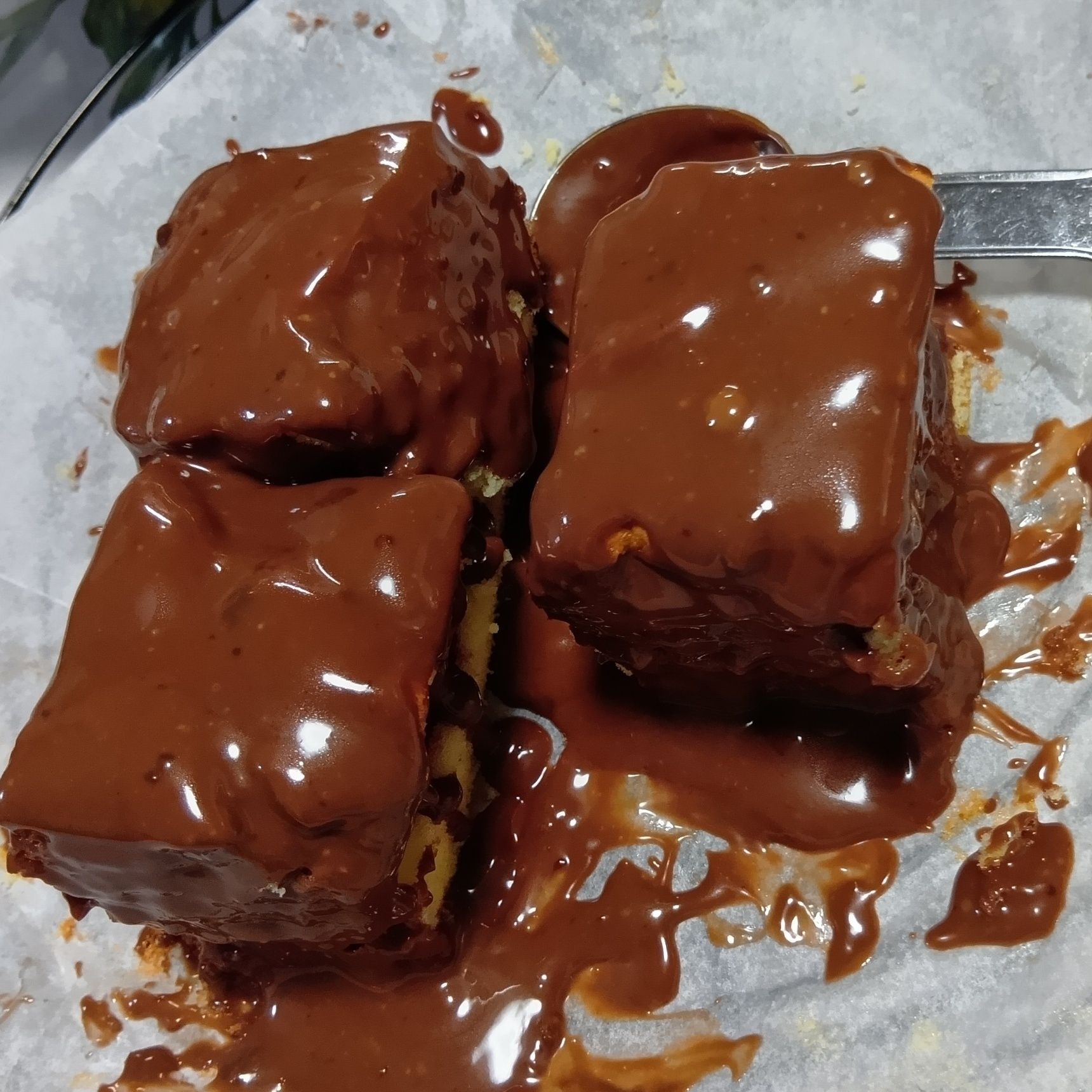 焼き上げた後は、型からクッキングシートごと取り出します。シートを広げたままカットしたり、チョコを流しかけたりすることもできます。