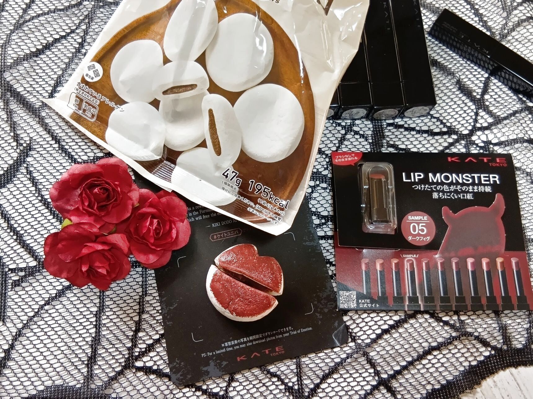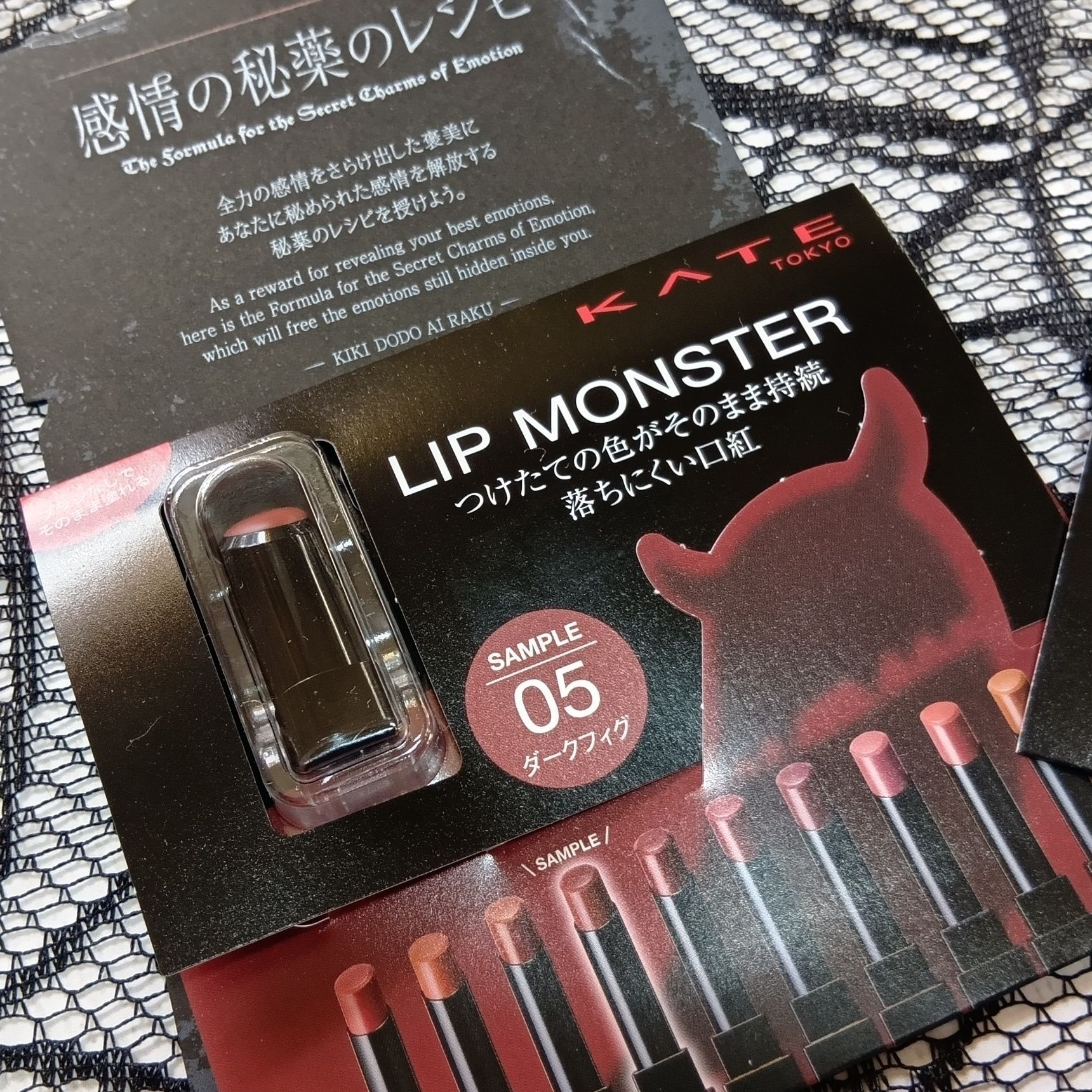 ケイトのリップモンスターは私も日常的に愛用しているお気に入りコスメ!手前に写っているのが今回いただいたサンプルで、娘と体験したので2個あります。