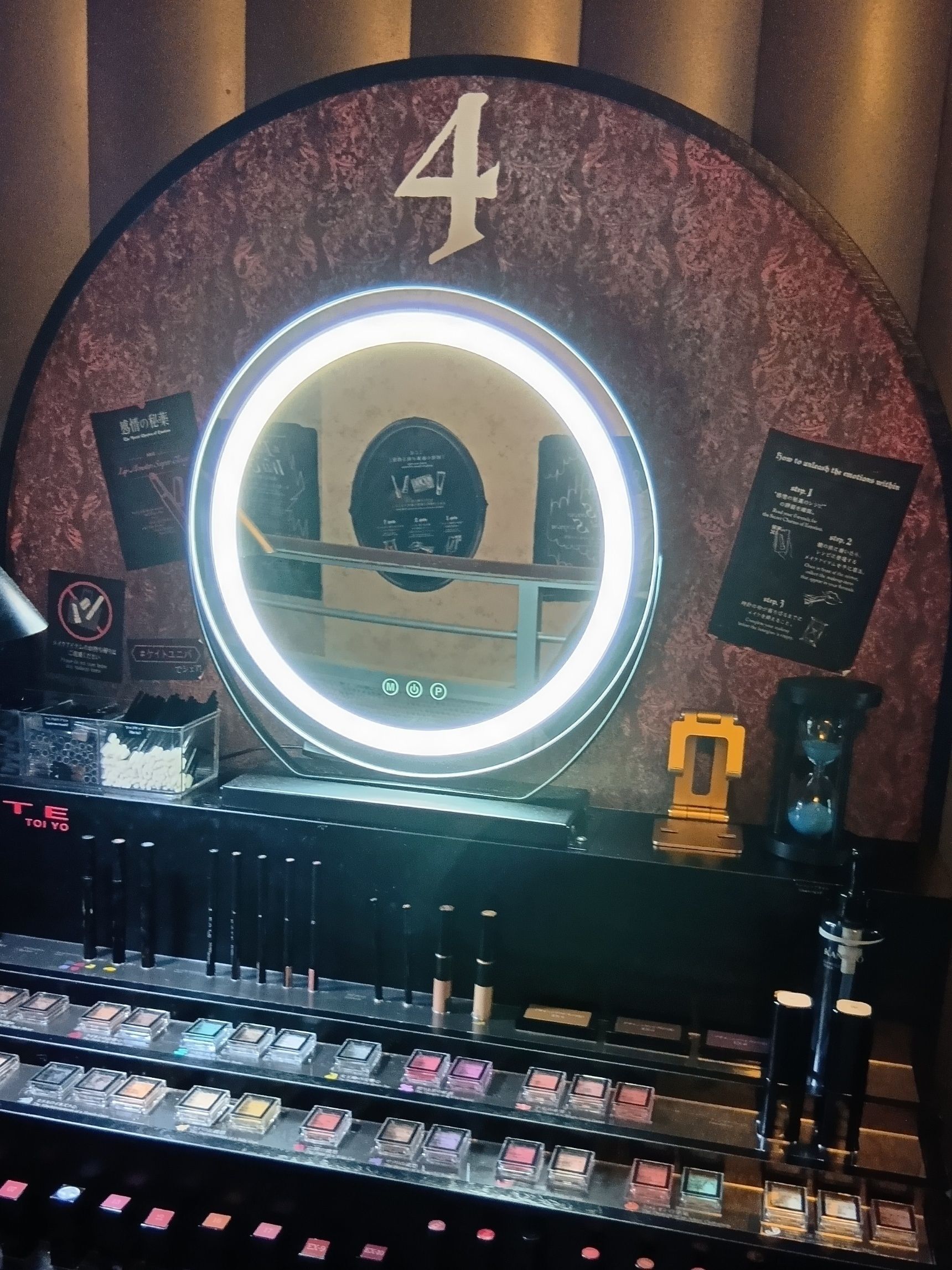 最後はコスメレシピを参考に、化粧台で自分だけのメイク体験!偶然ですが、4番の化粧台に案内されたのも、ハロウィンチック!