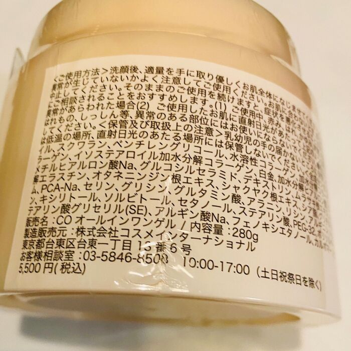 裏面を見ると、抗炎症作用やアレルギー作用を抑えるグリチルリチン酸や、若返りのビタミンとも言われているトコフェノールなども配合しているとのこと。
