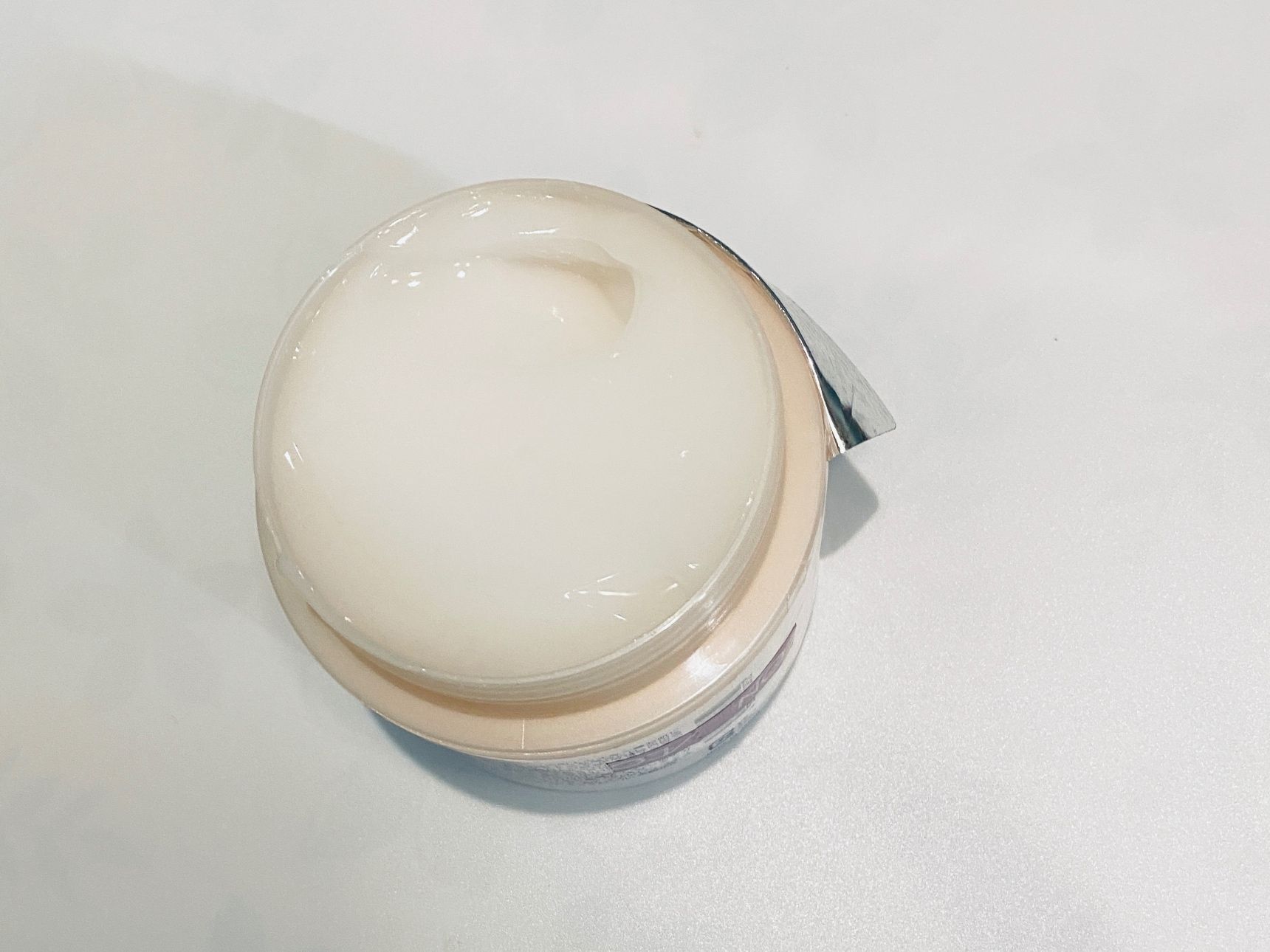なめらかな、サラッとしていて、ベタつくかなと思いましたが浸透が早く、馴染みやすいクリームです。