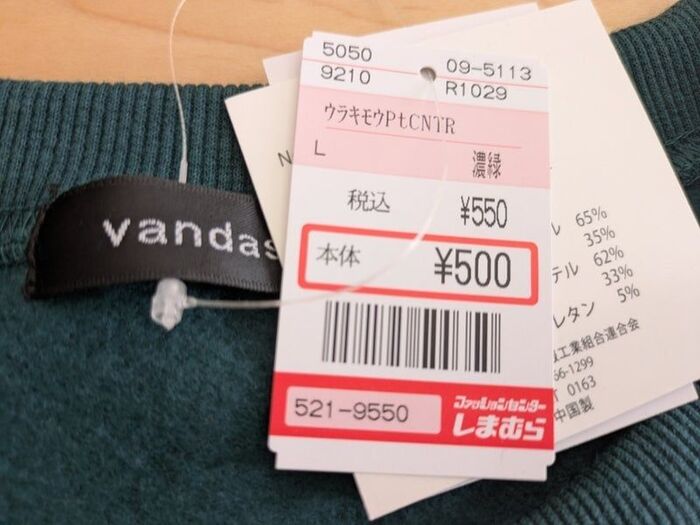 なんとこれ550円!!裏起毛で暖かそう、毛玉だらけになったとしてもワンシーズン着尽くすつもりです。