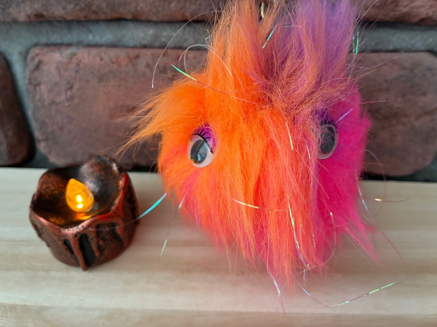ファーにはキラキラの糸が混ざっていてチャーミングな目にはピンクのアイシャドウ。