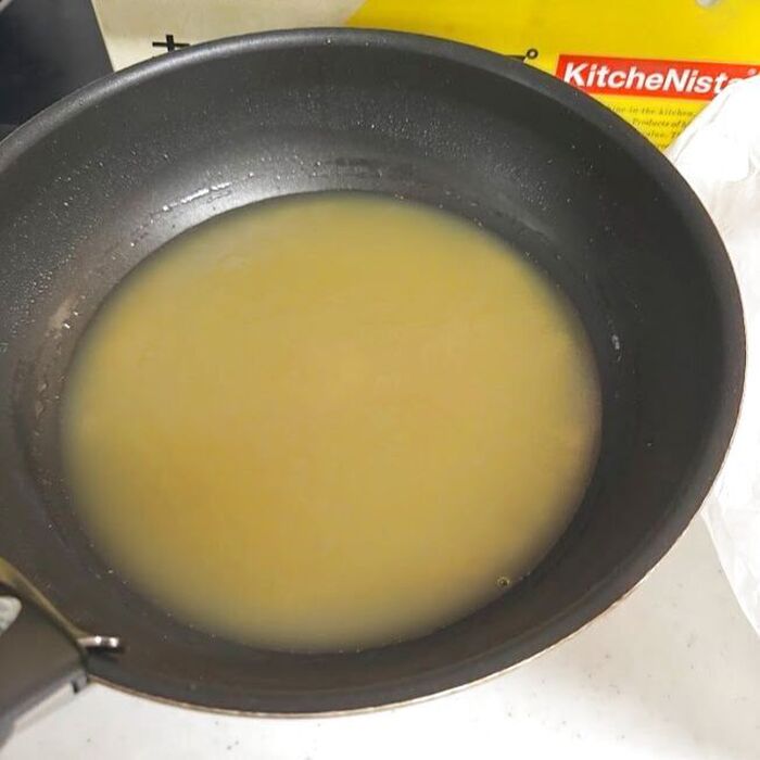 ①揚げ物をした直後、火を消し、油が熱いうちにを入れます。