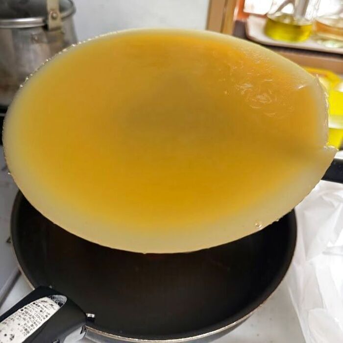 十分に冷ましてからヘラなどで簡単にきれいに剥がれます。(ゼリーみたいで面白いです)