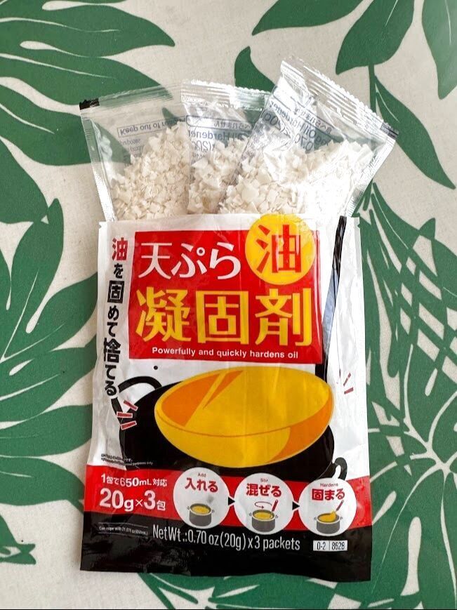 20g×3包入りです。使用量の目安は油650mlに対して1包20gで固まります。天然油脂由来成分です。