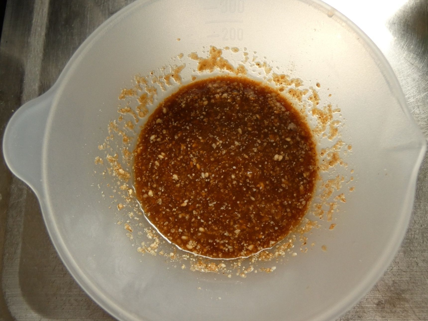 味噌、醤油、みりん、白すりごま、ごま油を混ぜ合わせます。