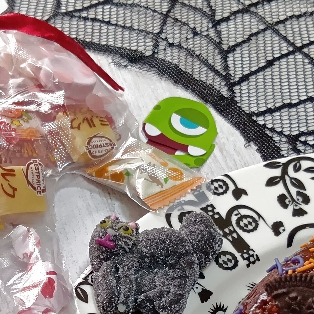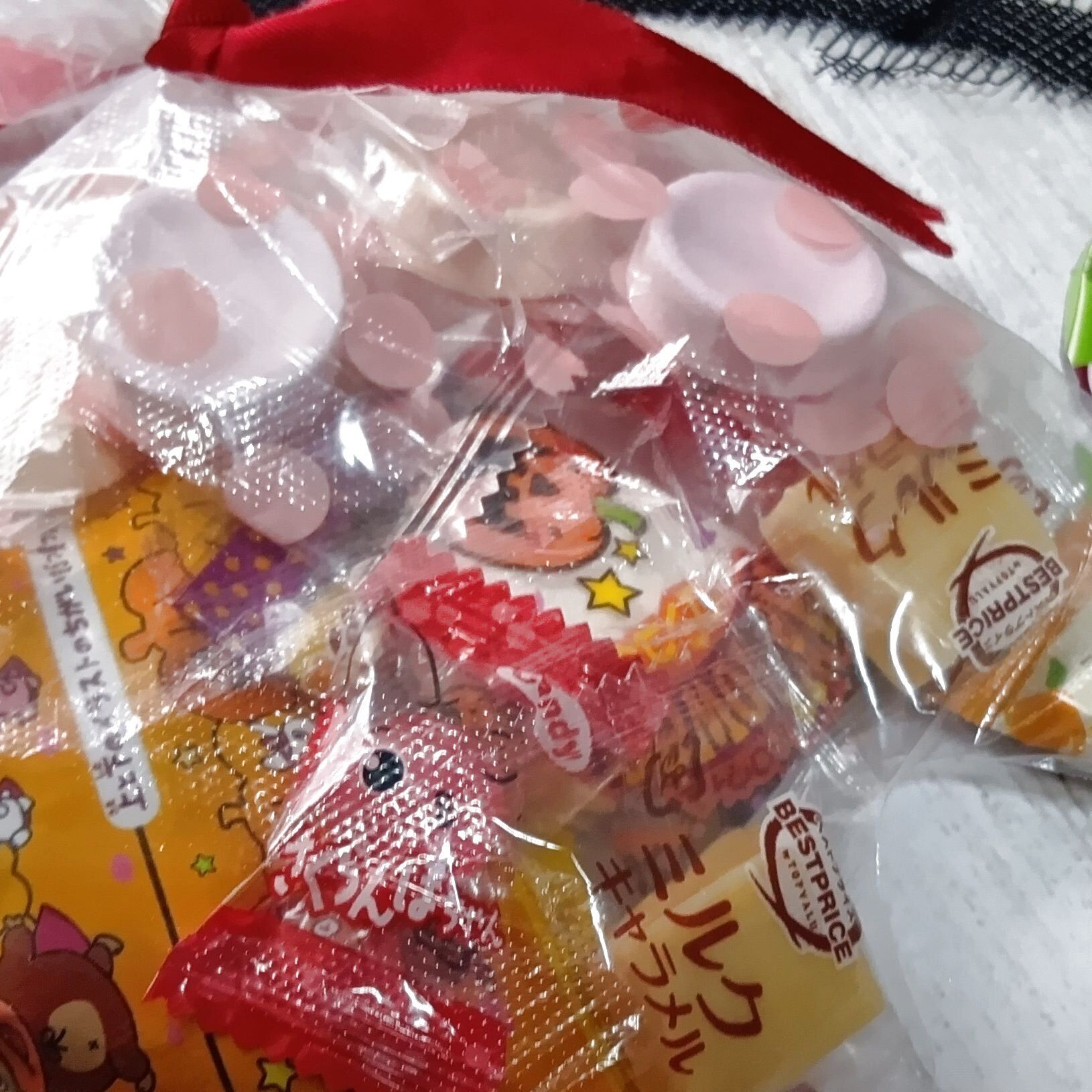 1.ハロウィンといえば、キャンディーとお菓子!なので、透明の使い捨てビニール袋の指先部分に、キャンディーを入れます。小指には、小さめの飴などが適しています。その他の指は、ハロウィンらしいオレンジ色の飴やカラフルな色の飴を選んで入れます。先を内側に折ってから指先へ入れるとスムーズに入れることができます。