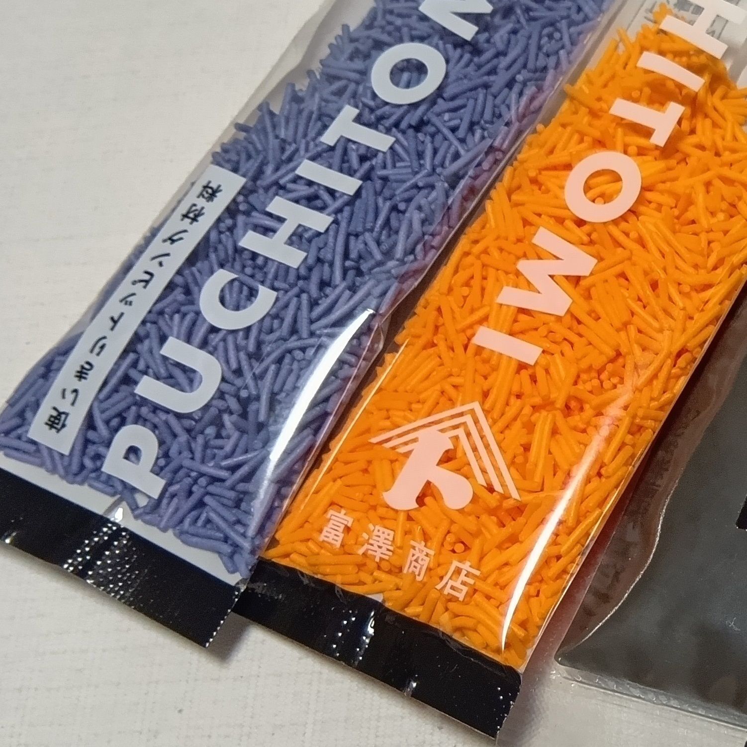 8.ガナッシュを上からかけ、少し待ってから、シュガーシュプレーのオレンジと紫を交互にかける。割った、オレオをバランスよく立てるようにのせる。